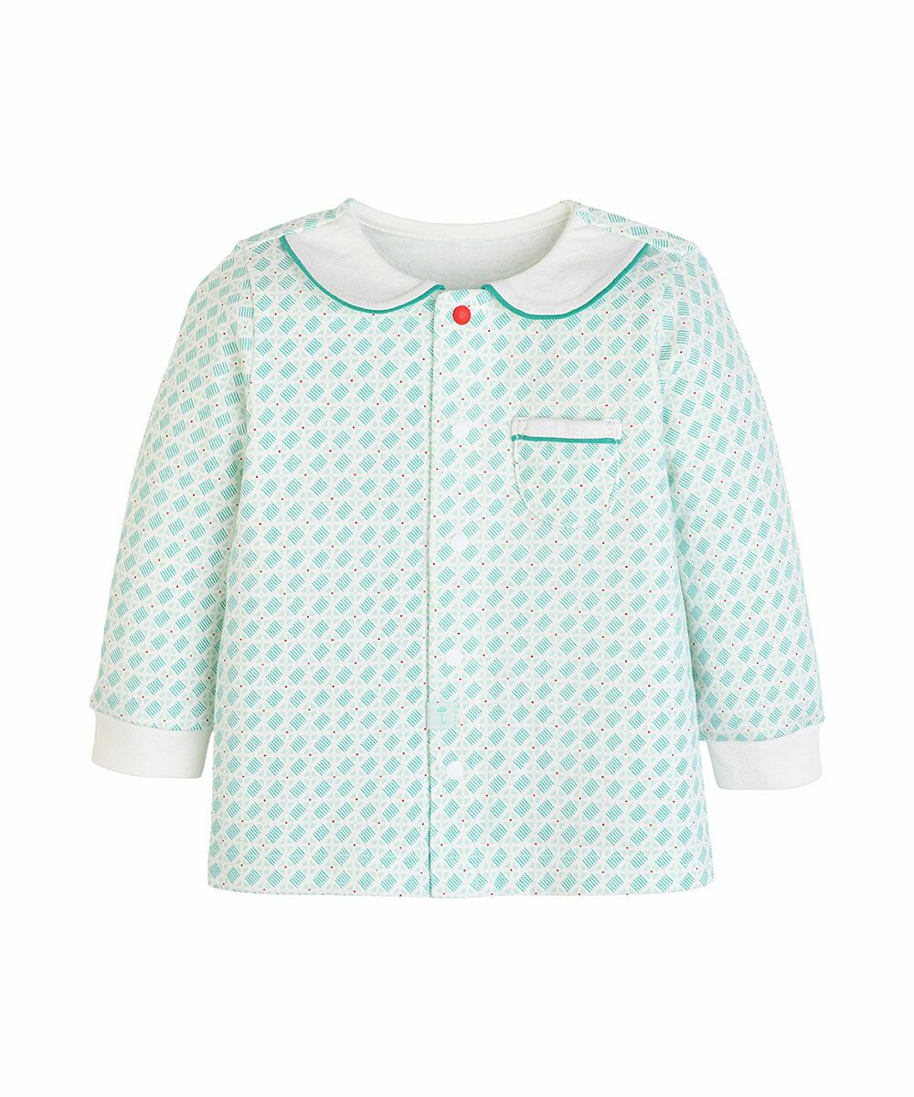 【ルームウェア】ベアコットン配色ミント長袖トップス&パンツ