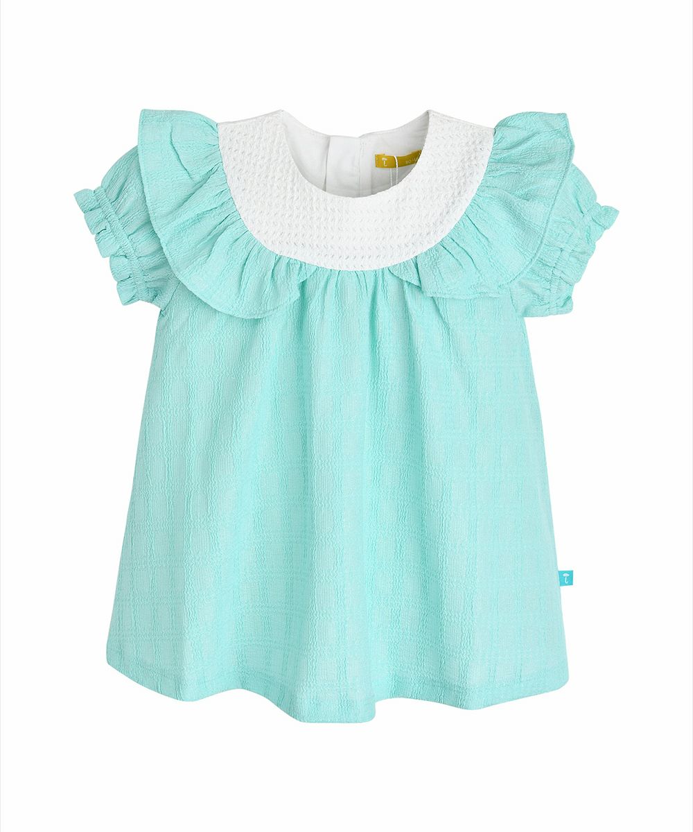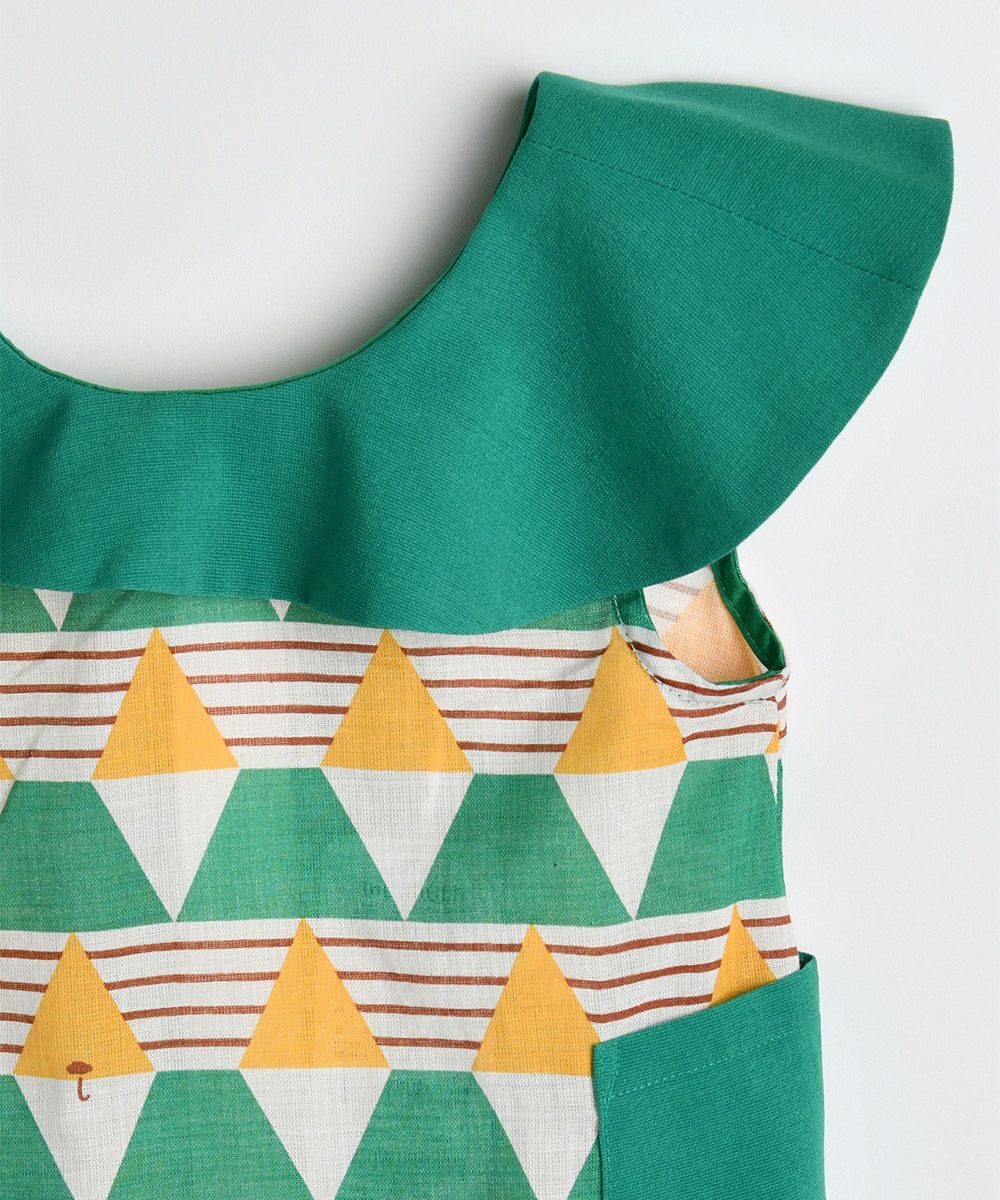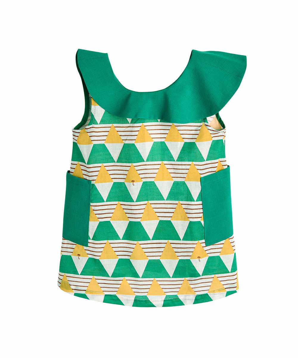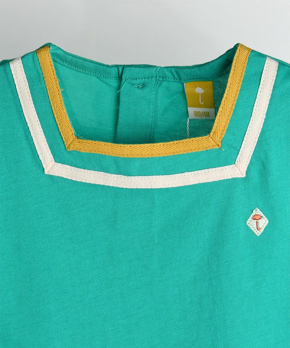 【セットアップ】グリーンピンタックカラーノースリブトップス&パンツ