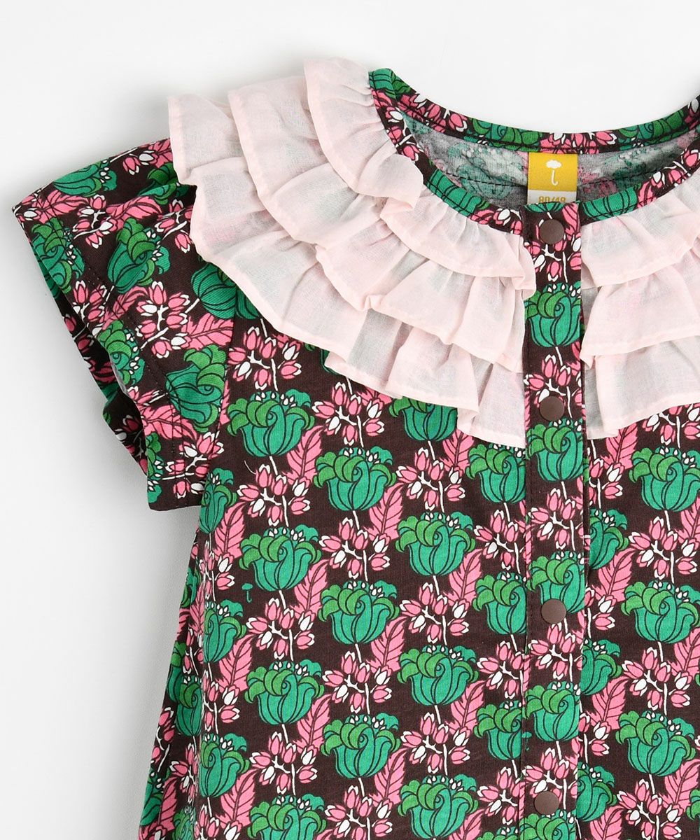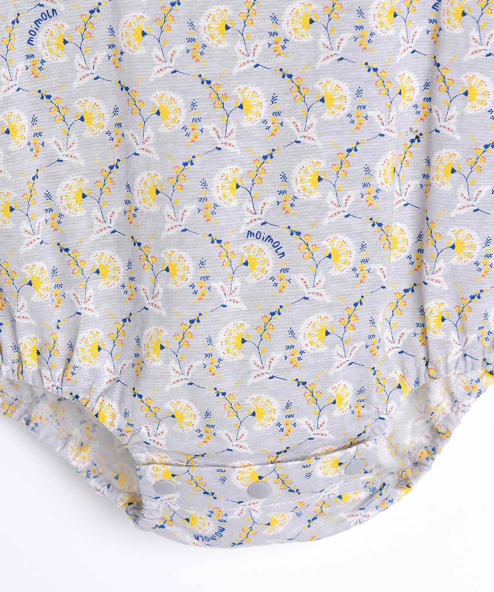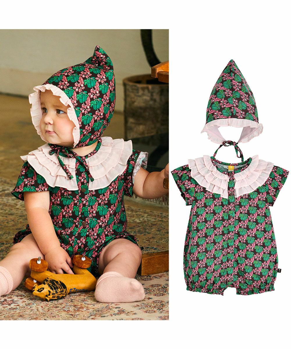【2点セット】ループフラワー7分袖カバーオール&ヘアバンド