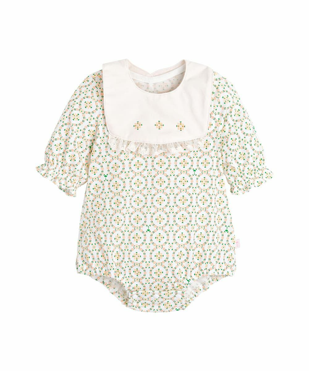 【2点セット】サークルヒール7分袖ロンパース&スタイ
