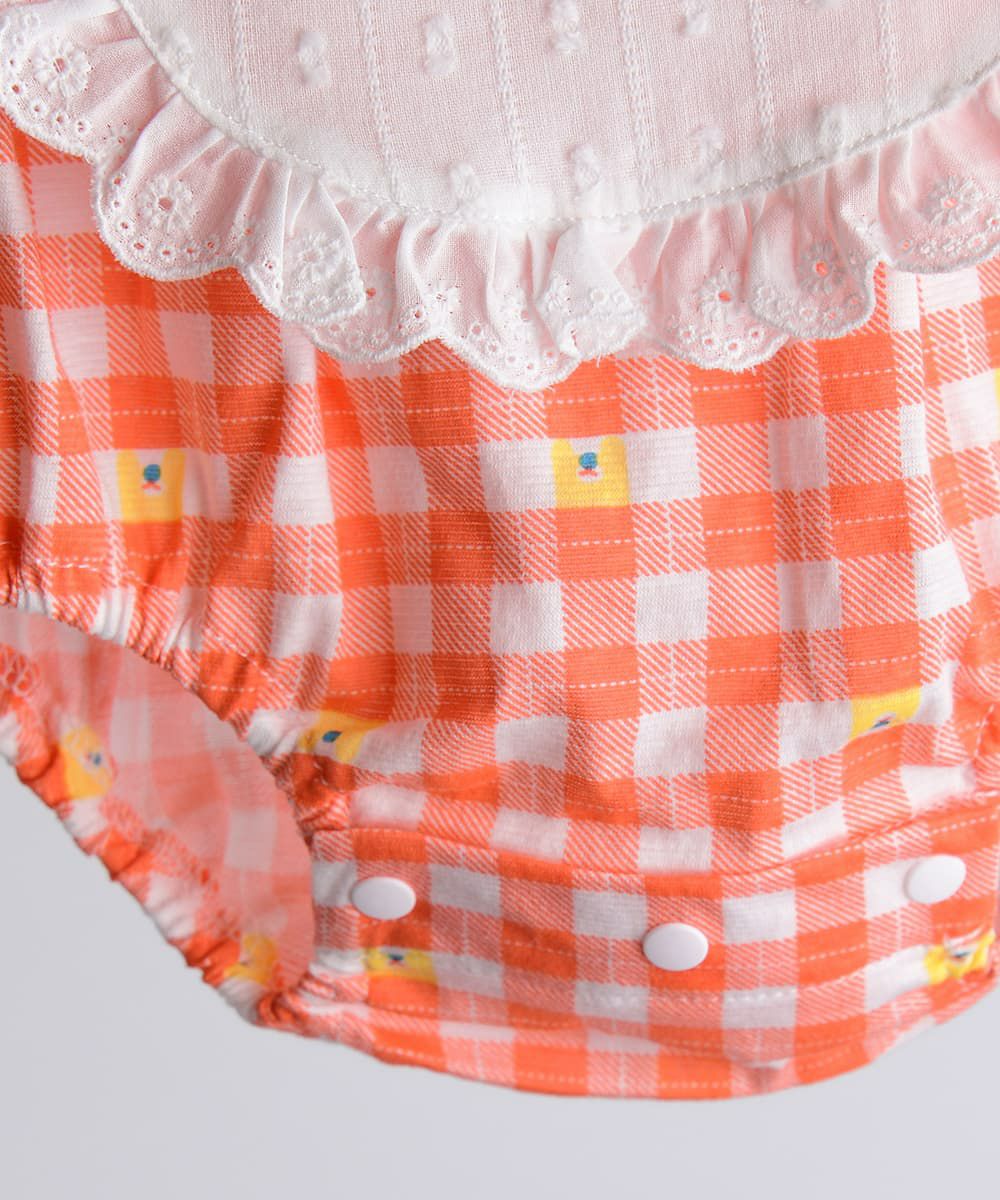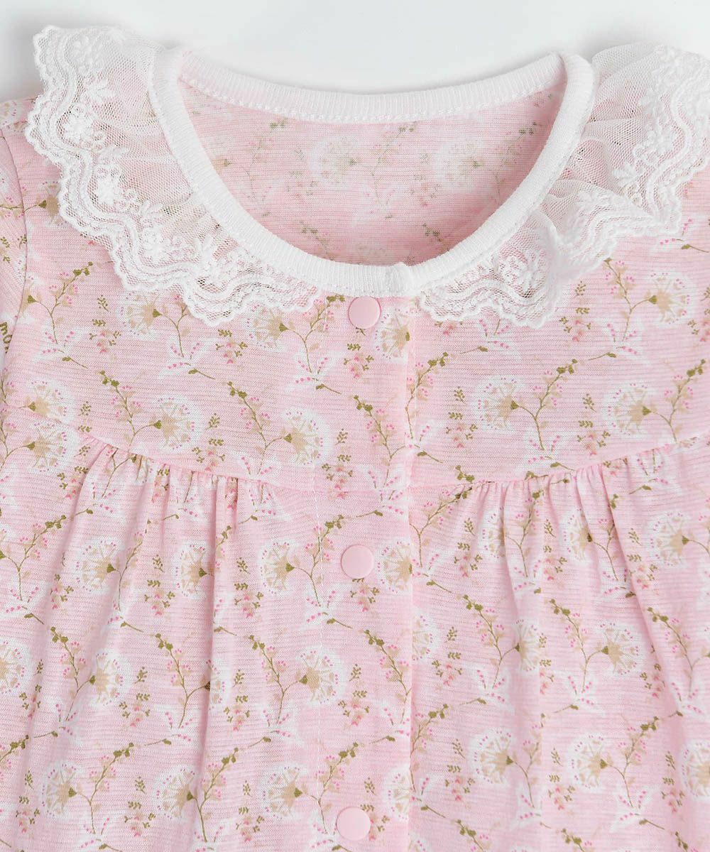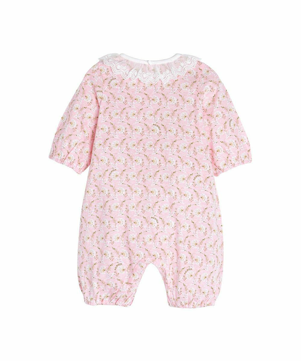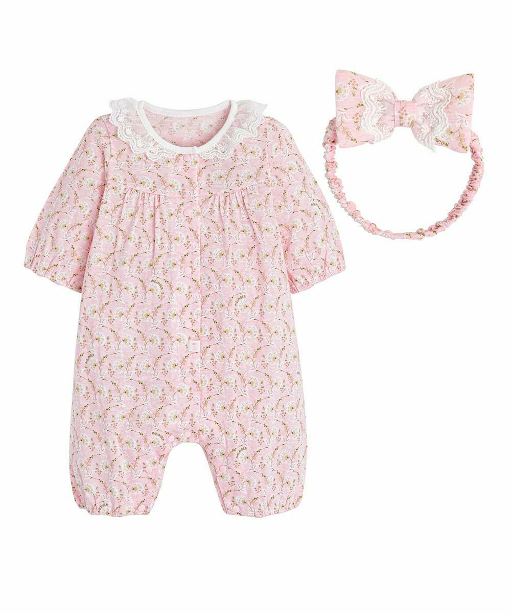 【2点セット】ピンピンフラワーレースカバーオール&ヘアバンド