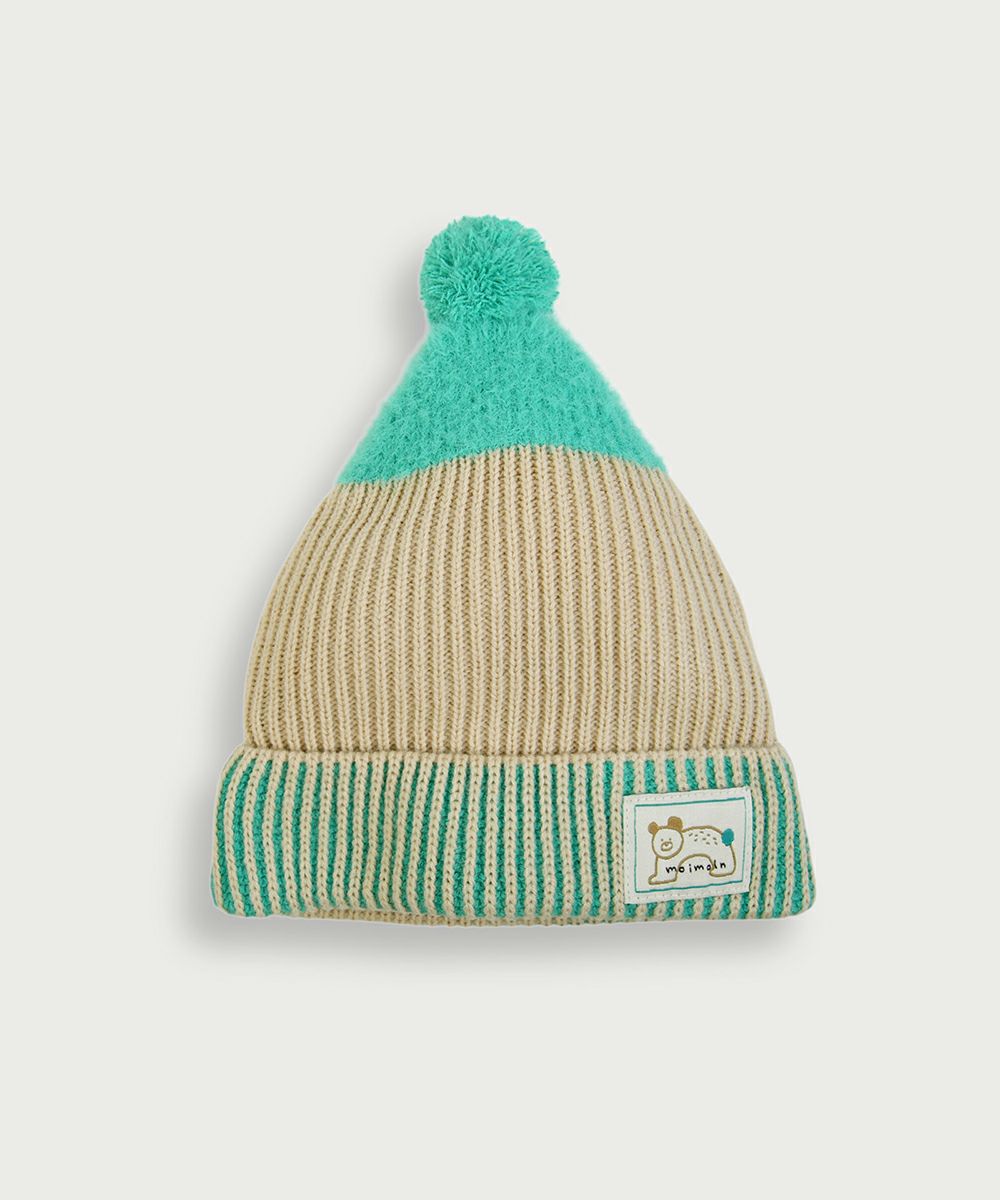 ベアカラーボーダーポンポンニット帽