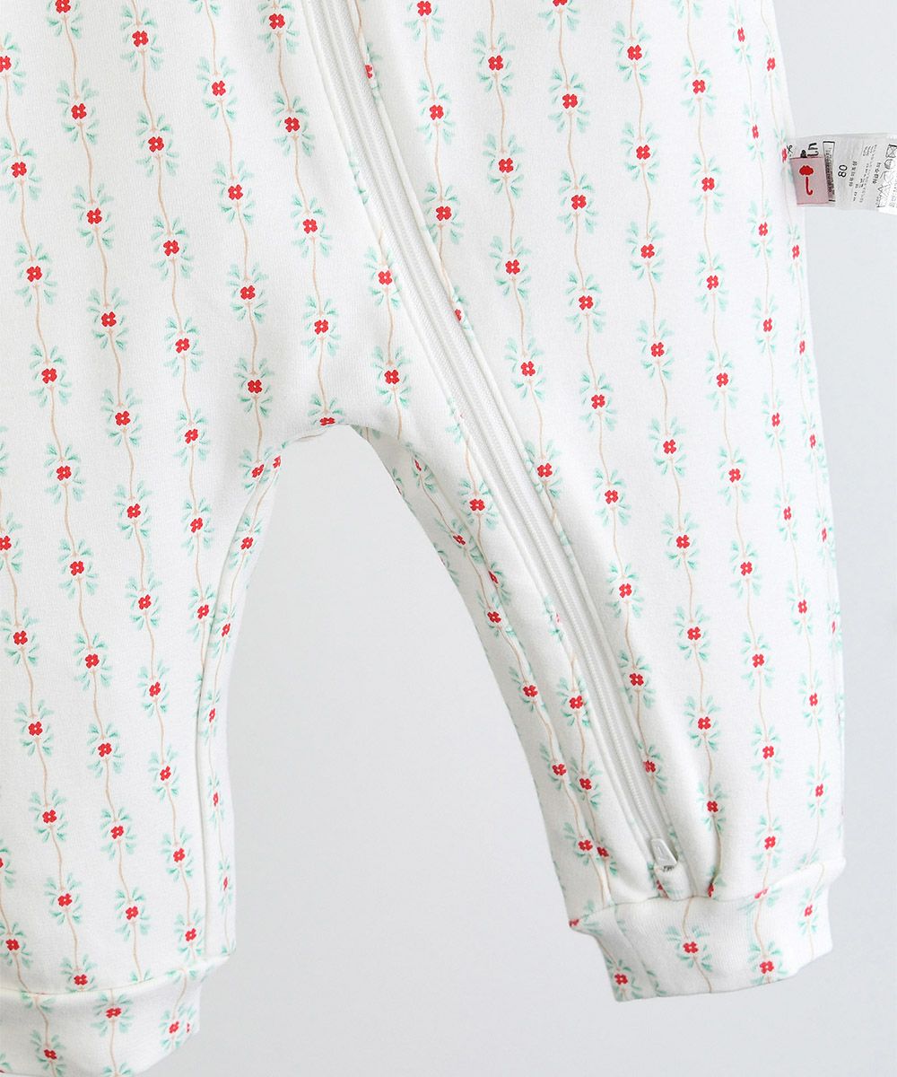 【モダールコットン】ロゼットガーデンZIP長袖カバーオール