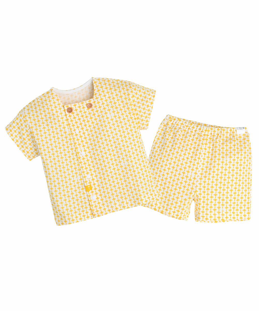 【2点セット】7分袖Tシャツ&幾何学柄カバーオール