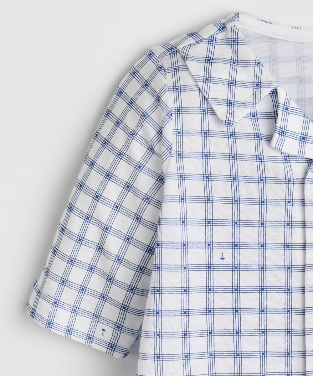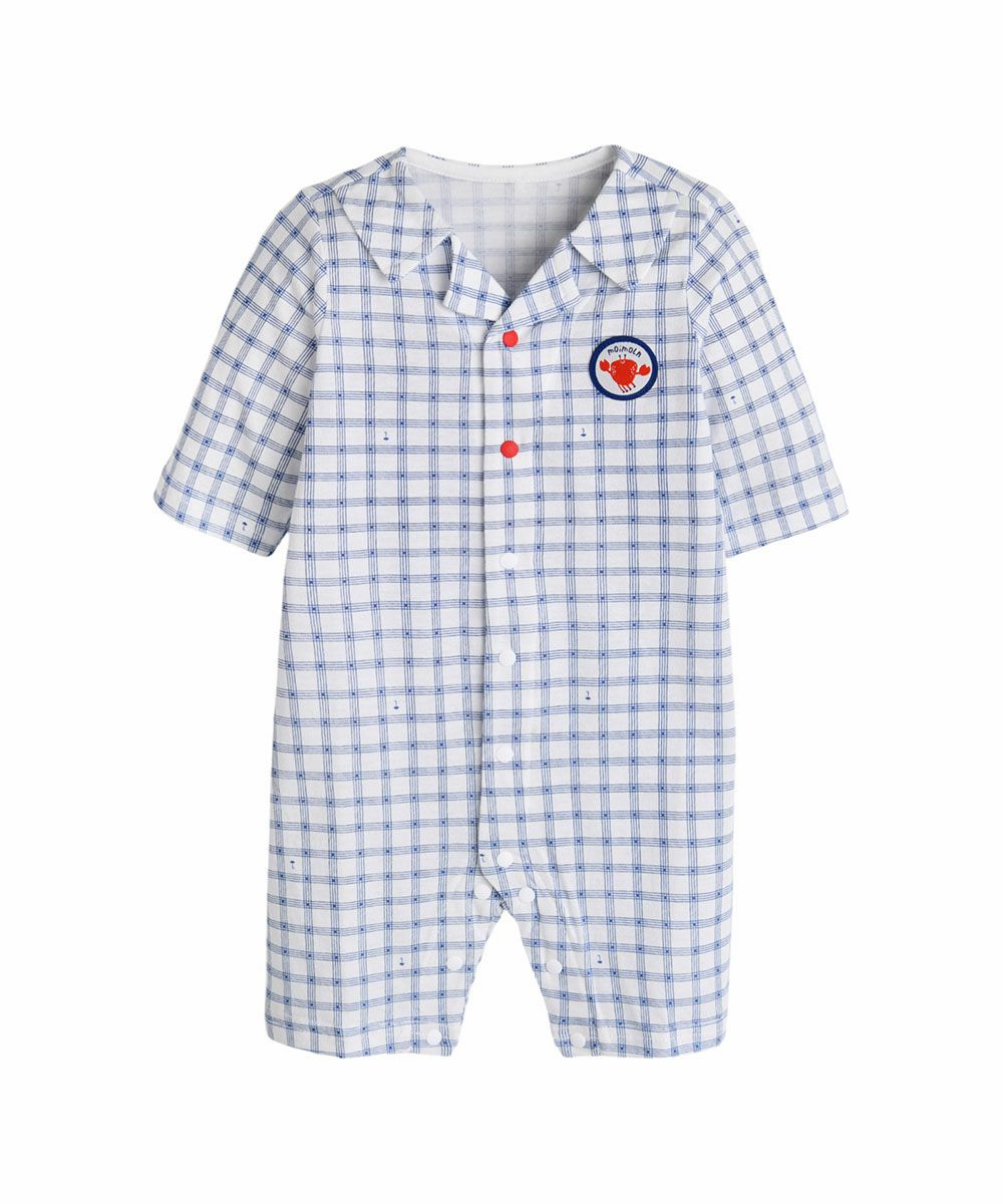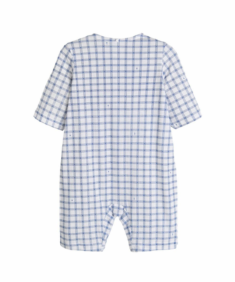 【モダールコットン】ブルーチェック7分丈カバーオール