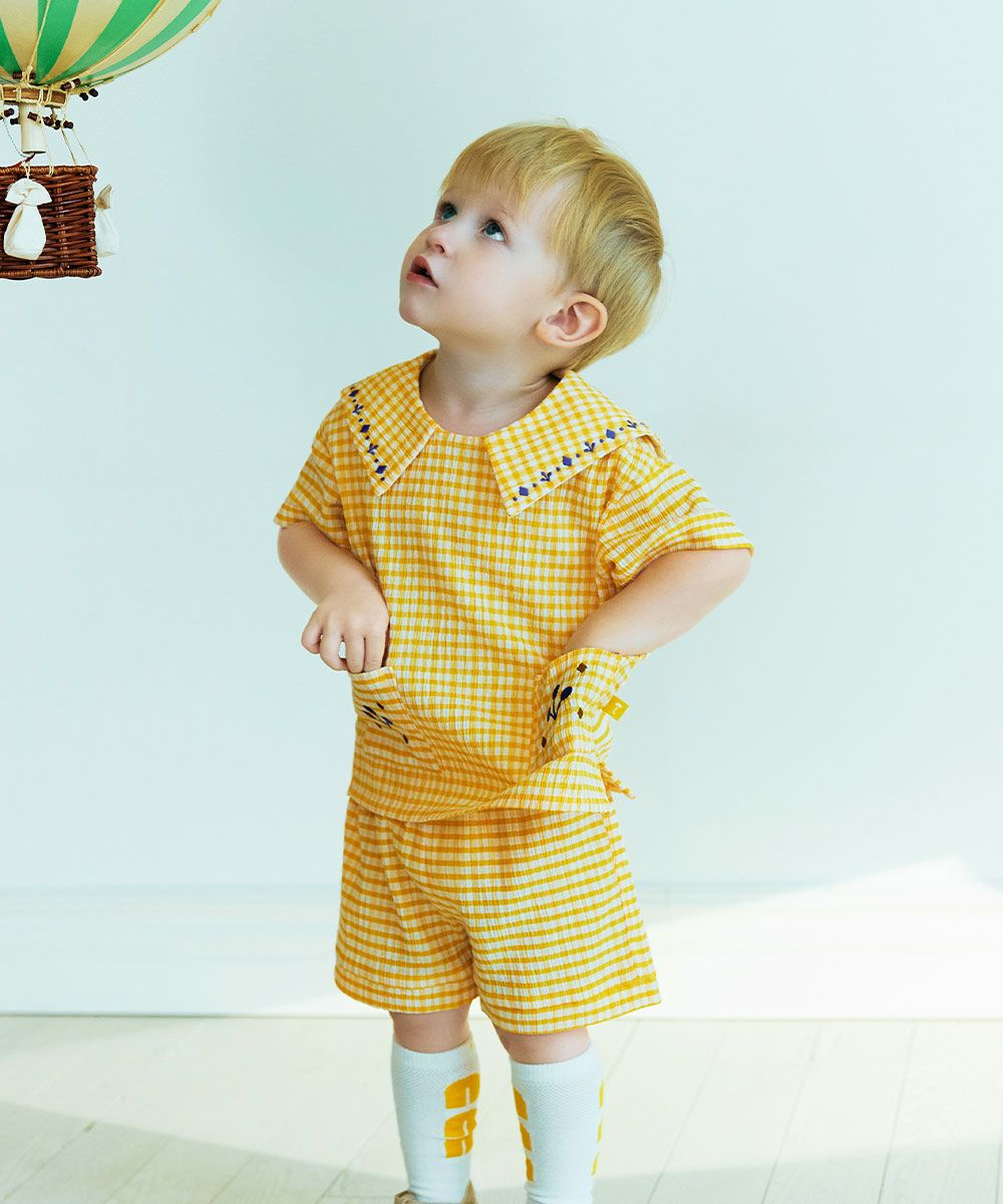 【セットアップ】クロッキーチェックフレンチスリーブトップス&ショートパンツ
