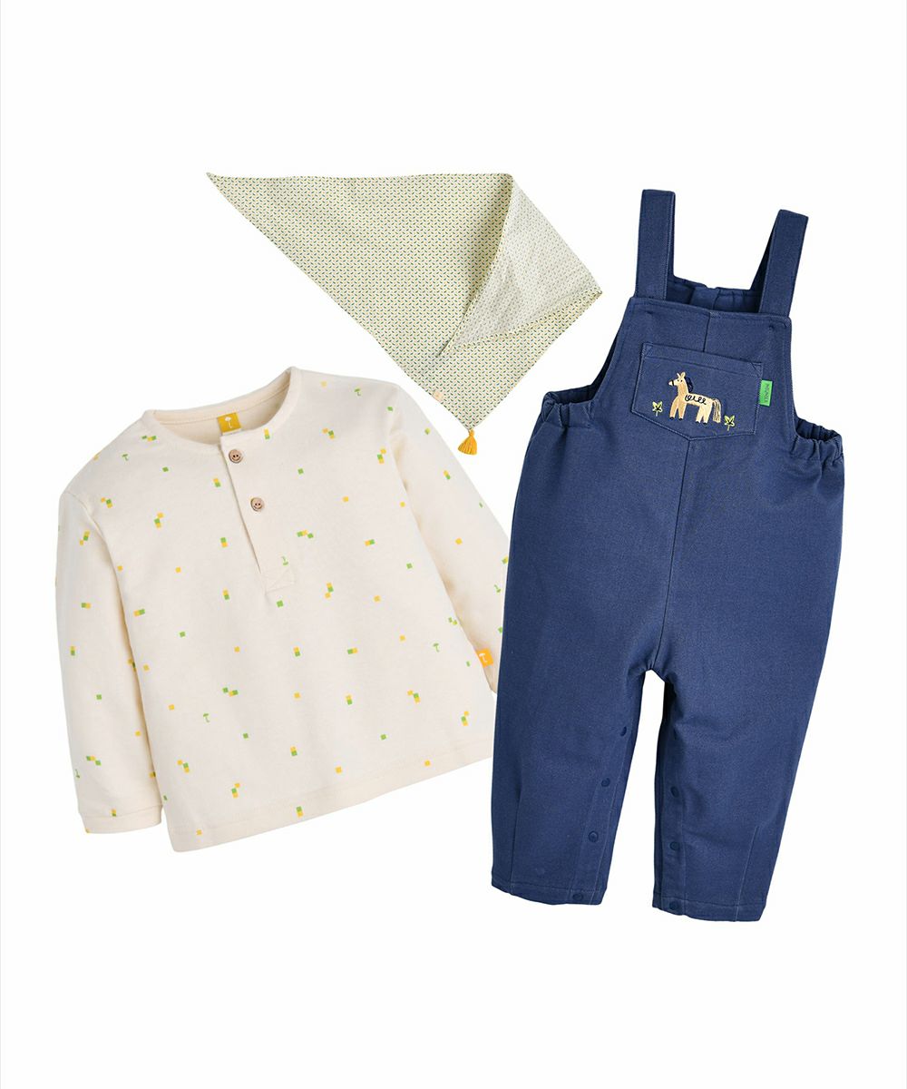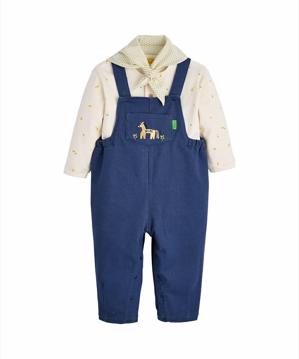 【3点セット】ドットスカーフ&トップス&ポニーオーバーオール