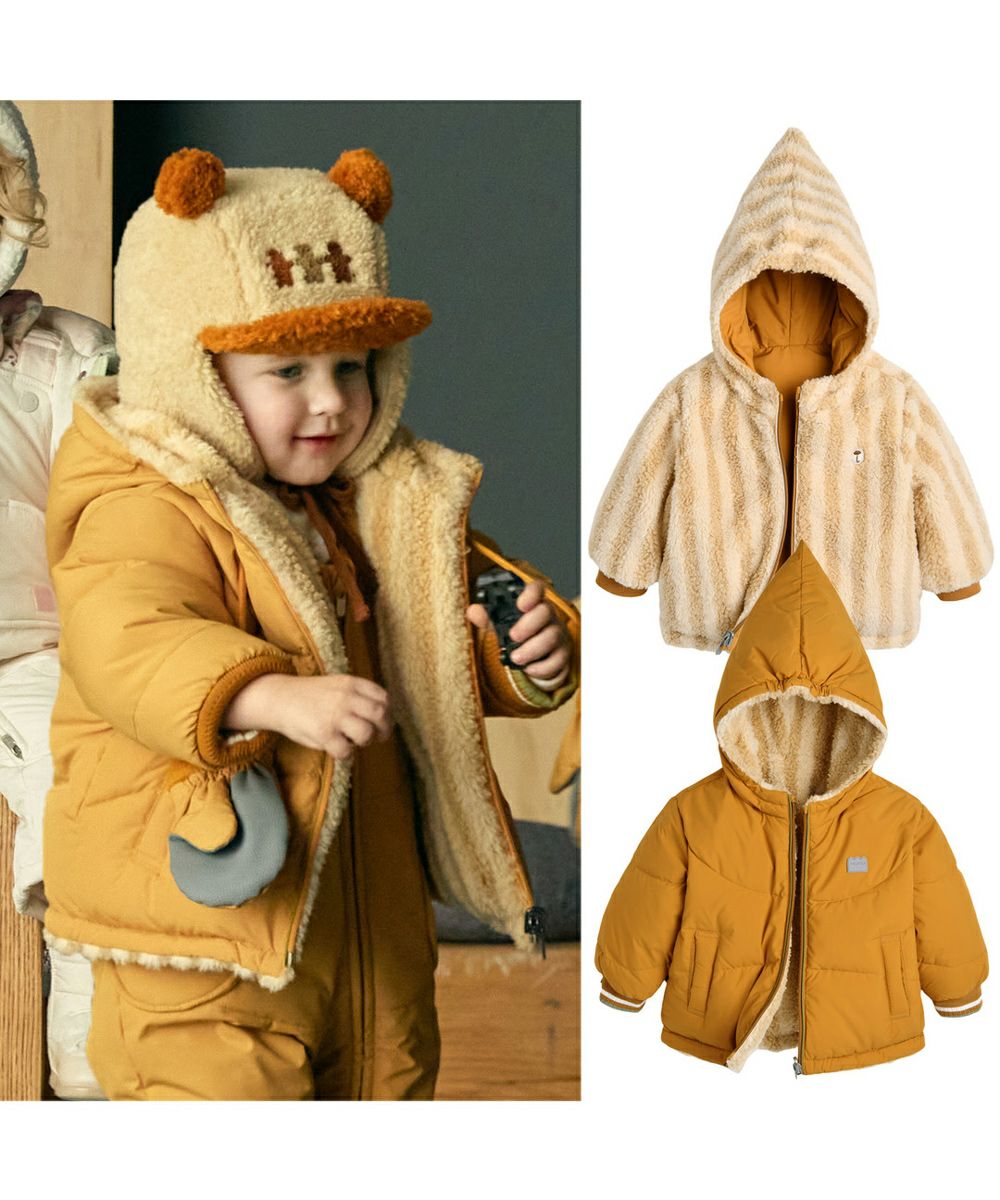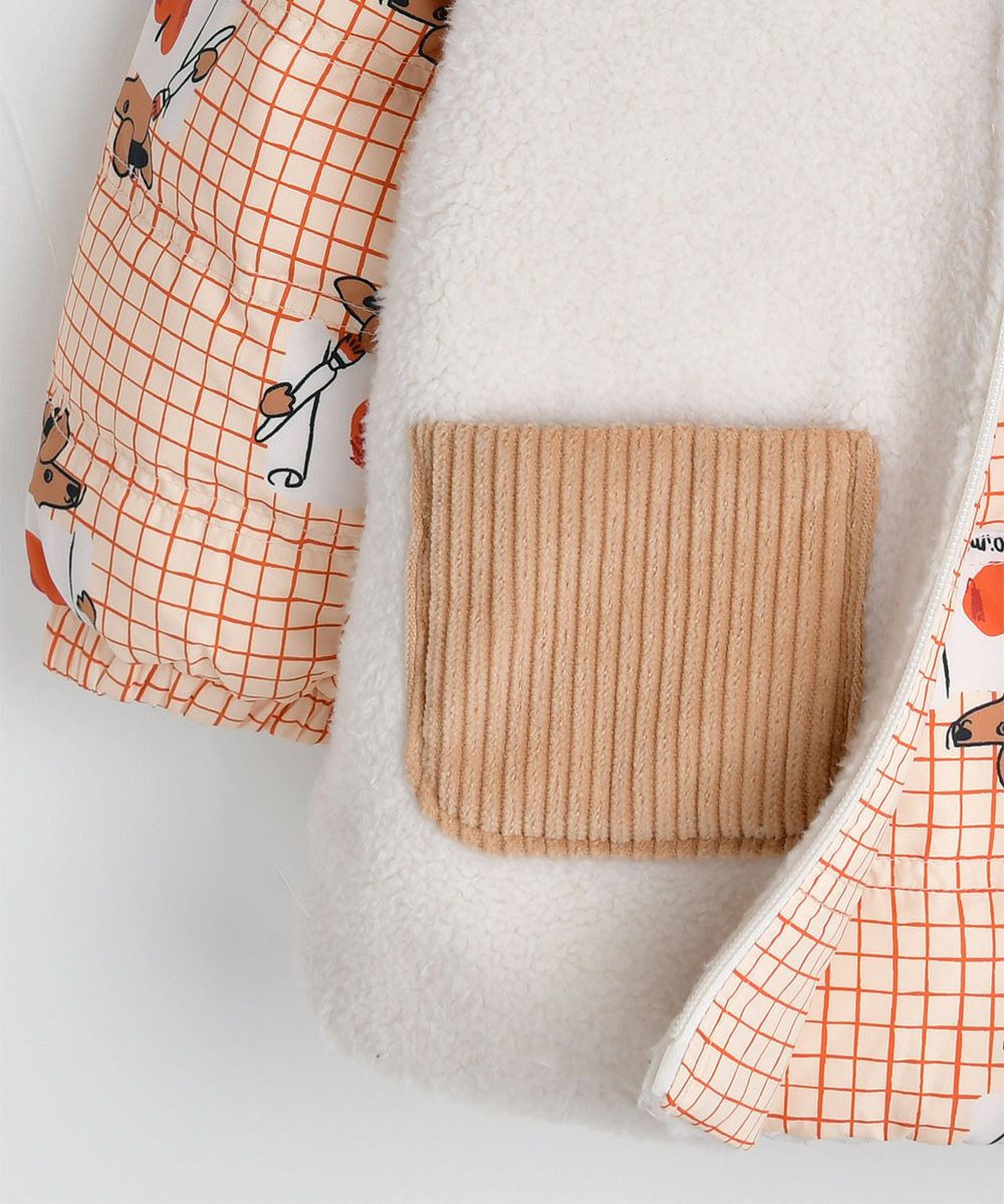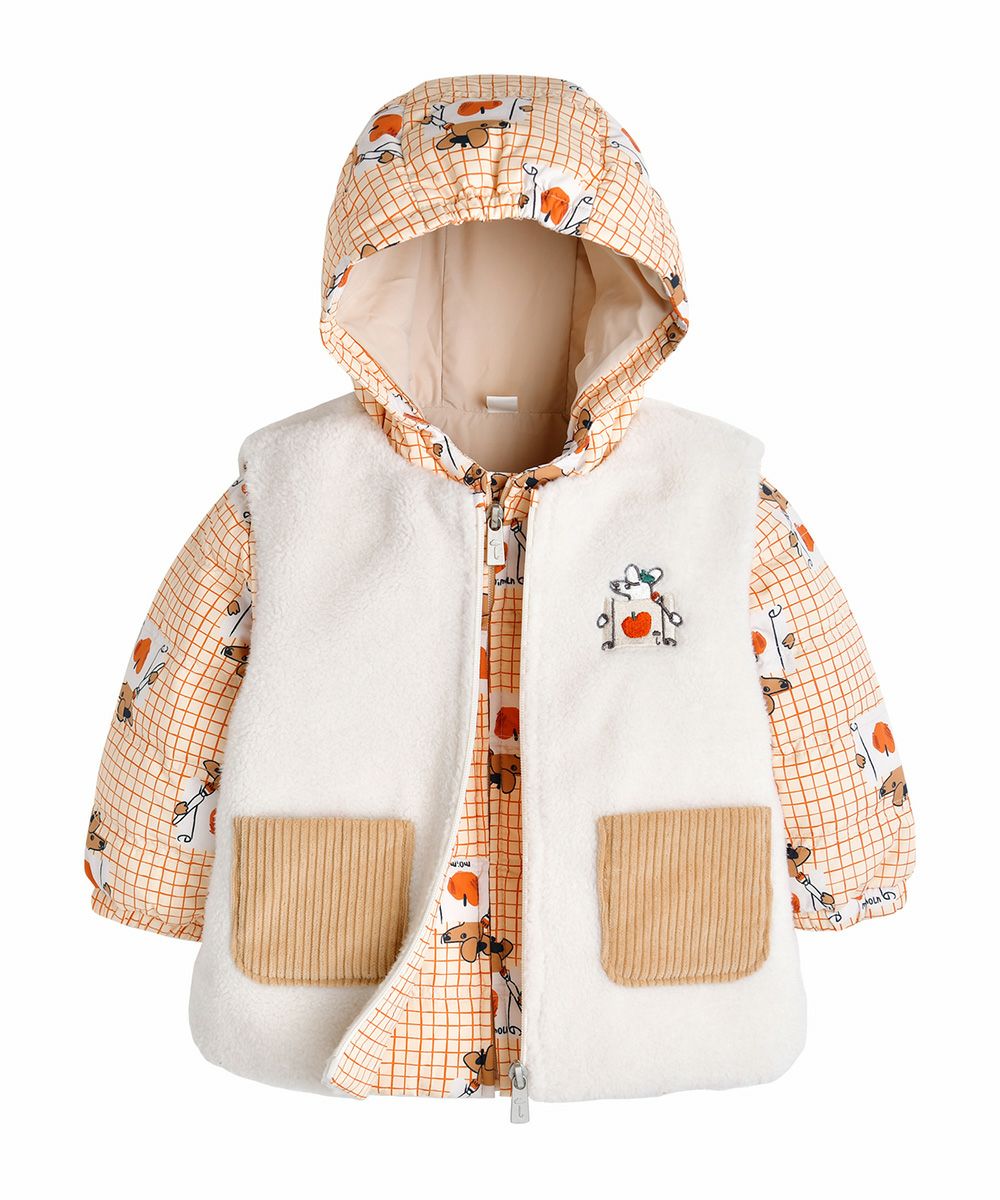 【2点セット】フォックスストライプ柄カバーオール&帽子