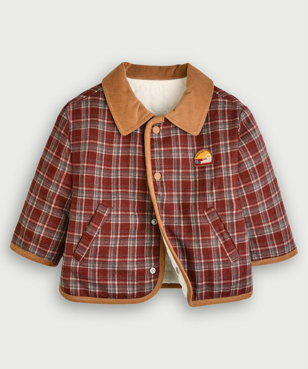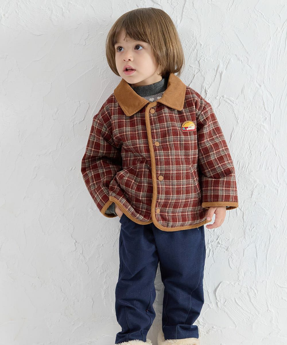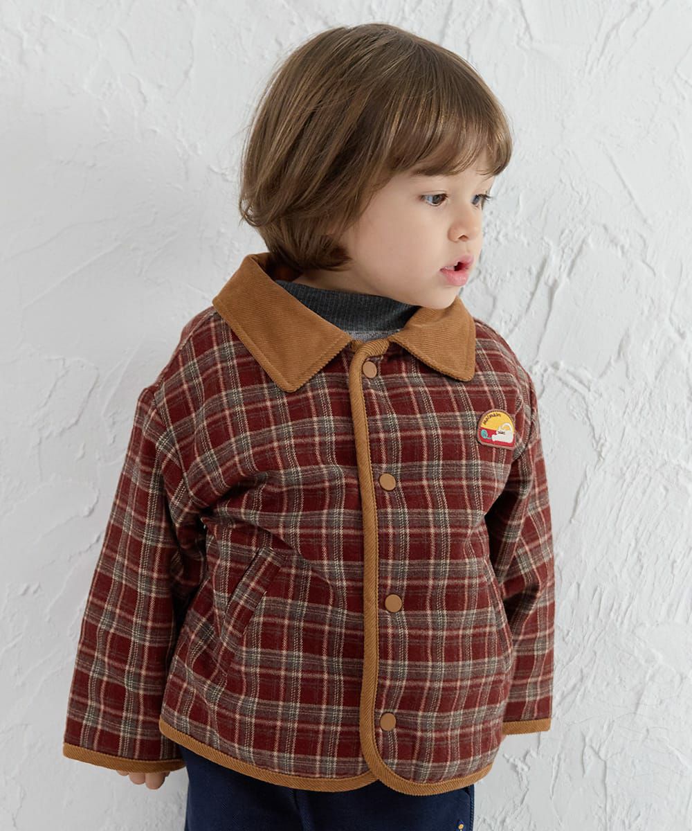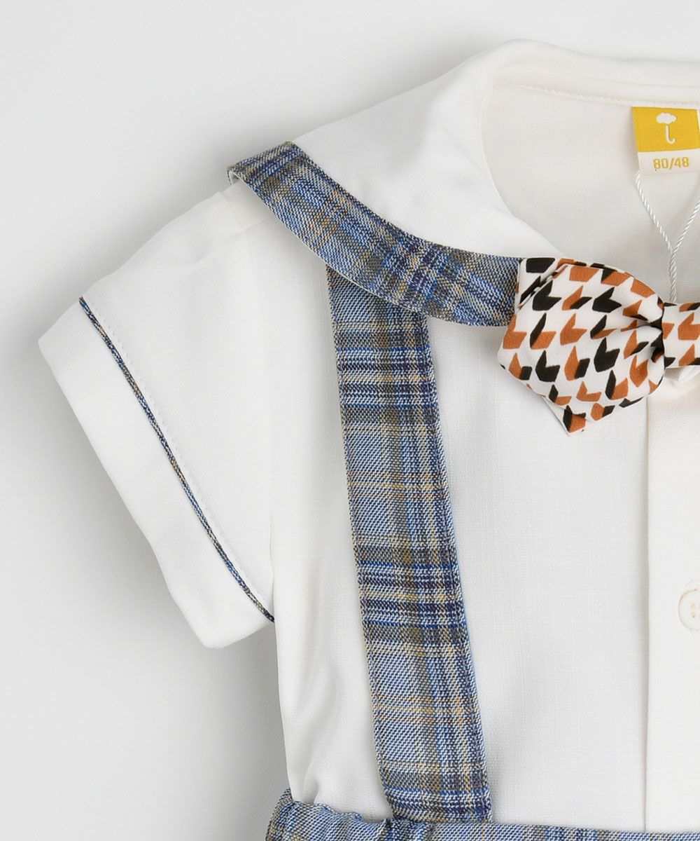 【2点セット】Picnicチェック長袖ショートカバーオール&帽子