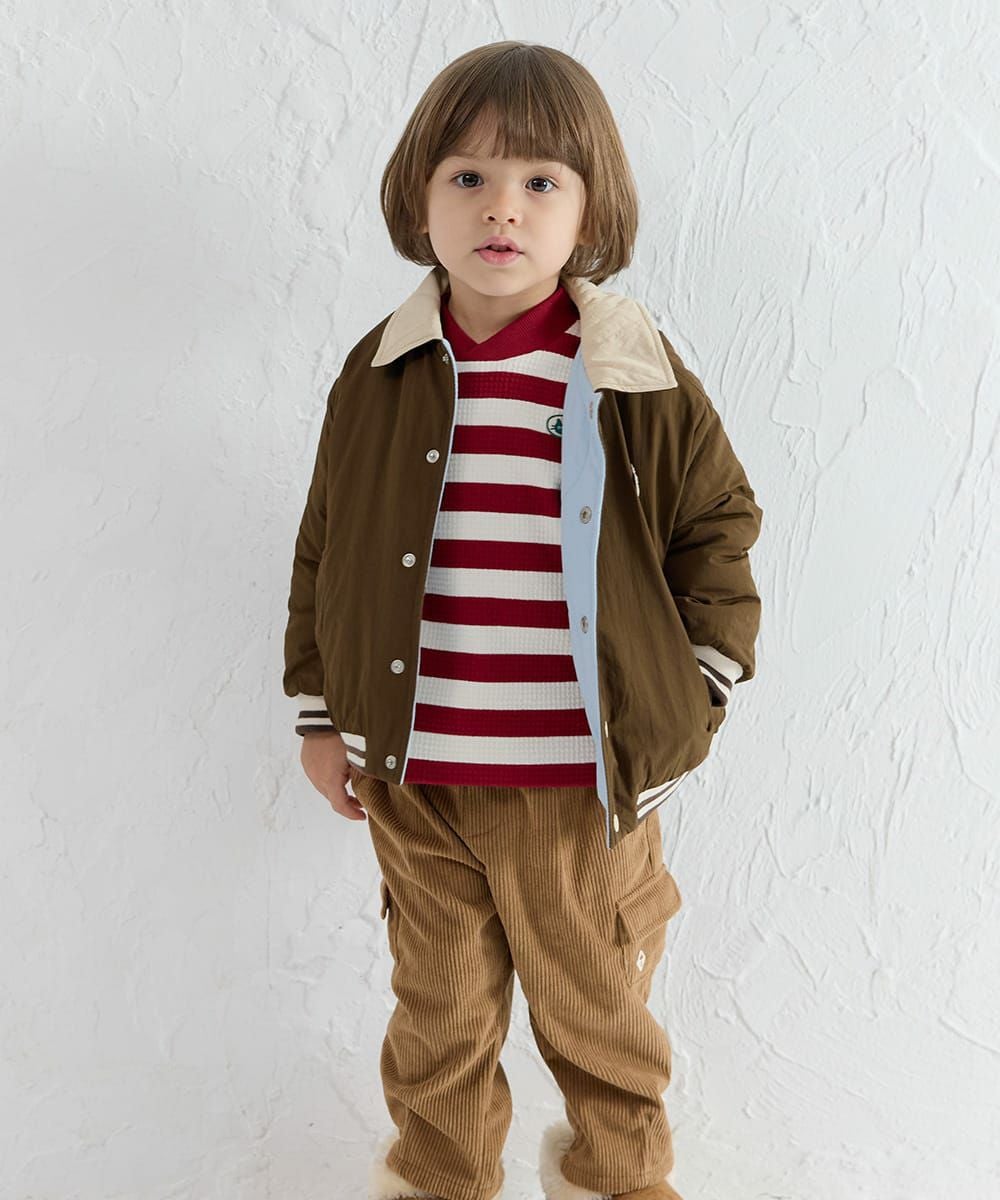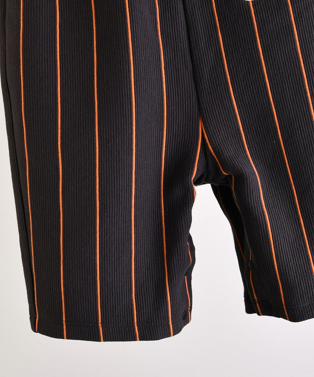 【2点セット】ストライプ長袖ショートカバーオール&帽子
