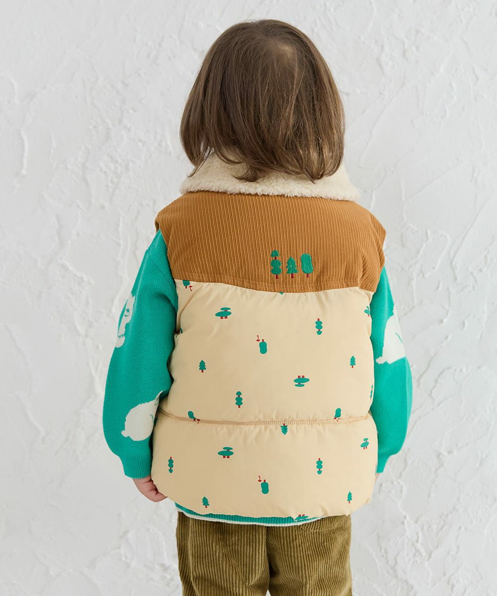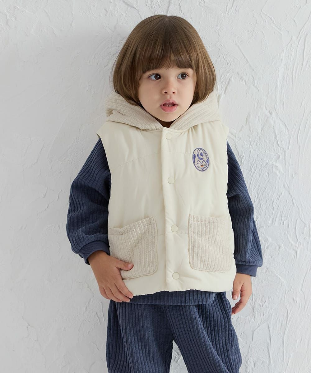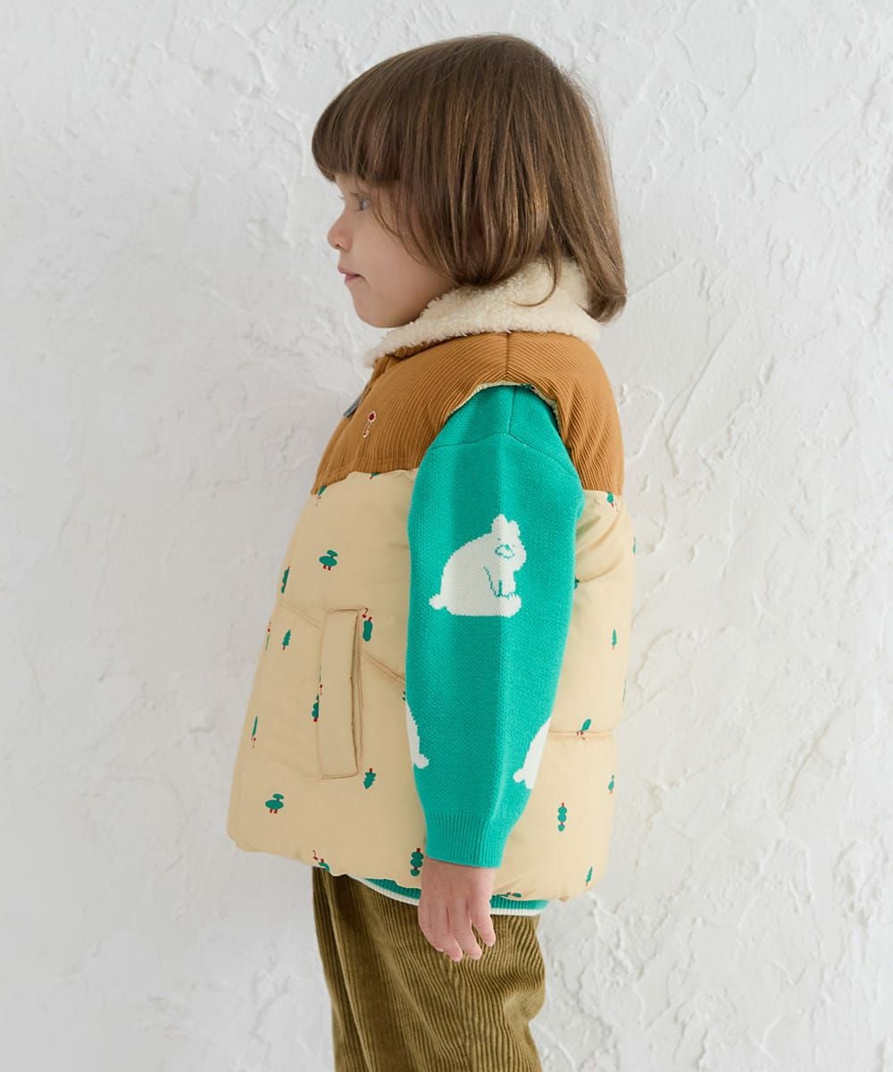 【2点セット】クローバー長袖カバーオール&ビックベアベスト