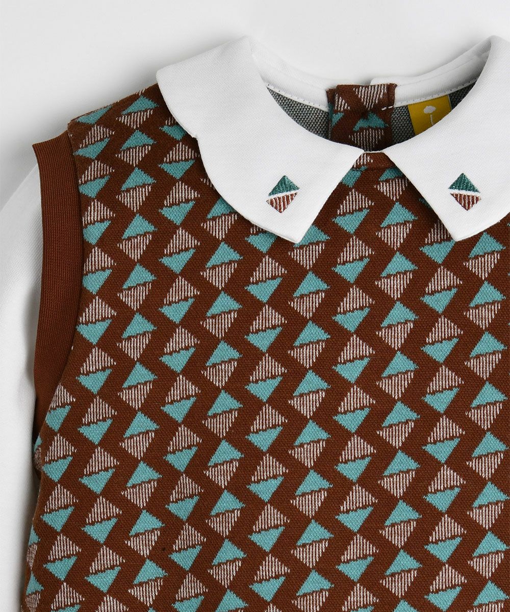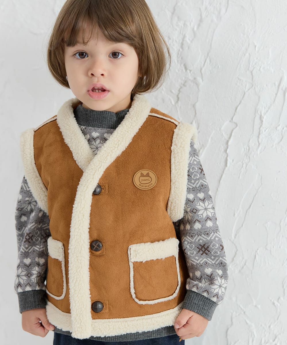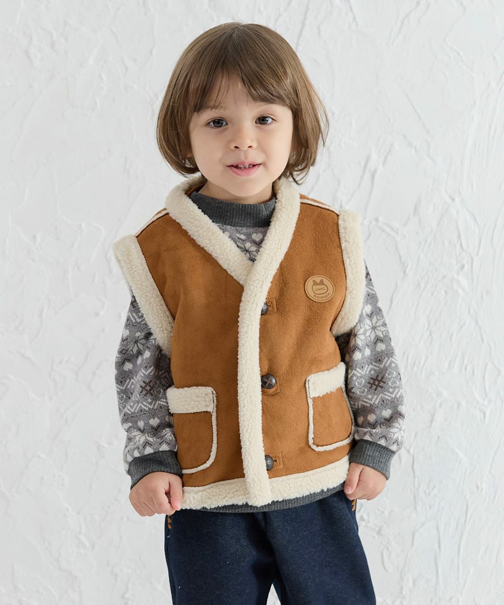 【2点セット】クローバー長袖カバーオール&ビックベアベスト