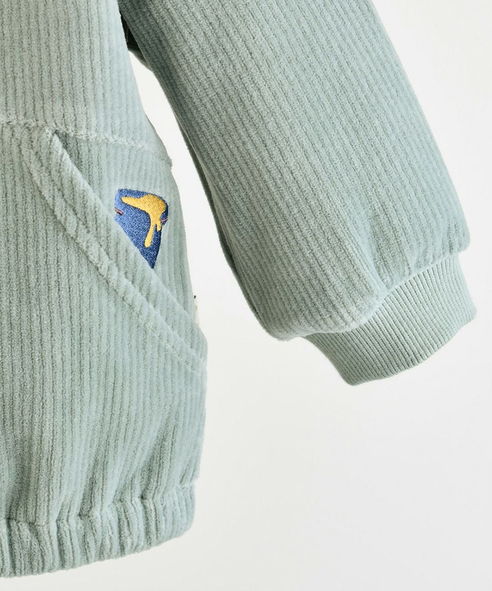 【2点セット】ライオン刺繍長袖カバーオール&耳付き帽子