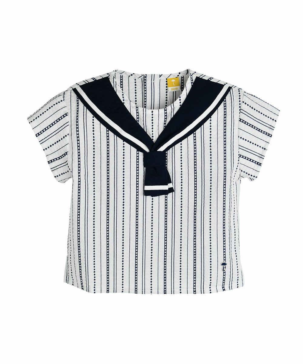 【セットアップ】フォックス襟付きボーダー長袖トップス&ロングパンツ