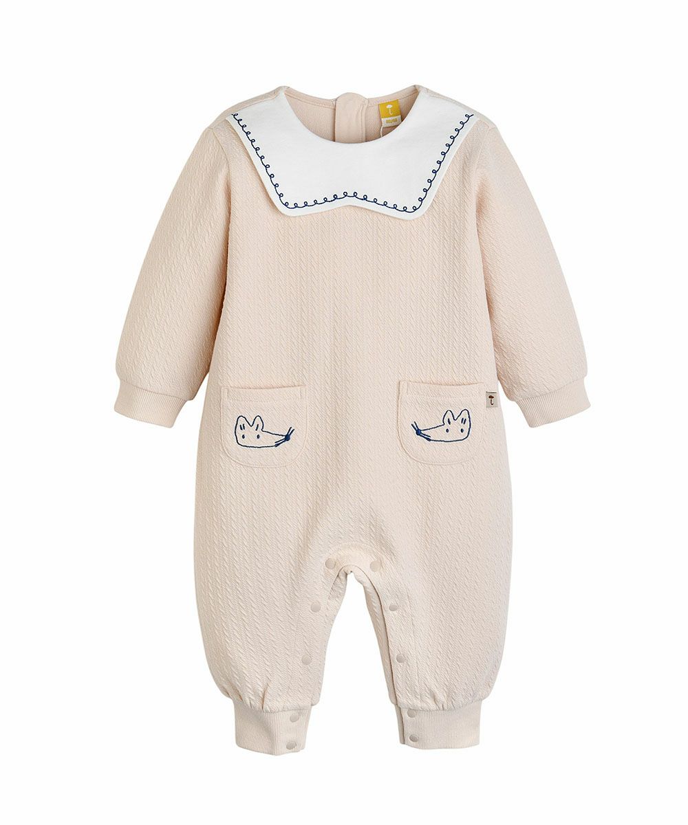 【2点セット】ベアストライプ長袖カバーオール&帽子