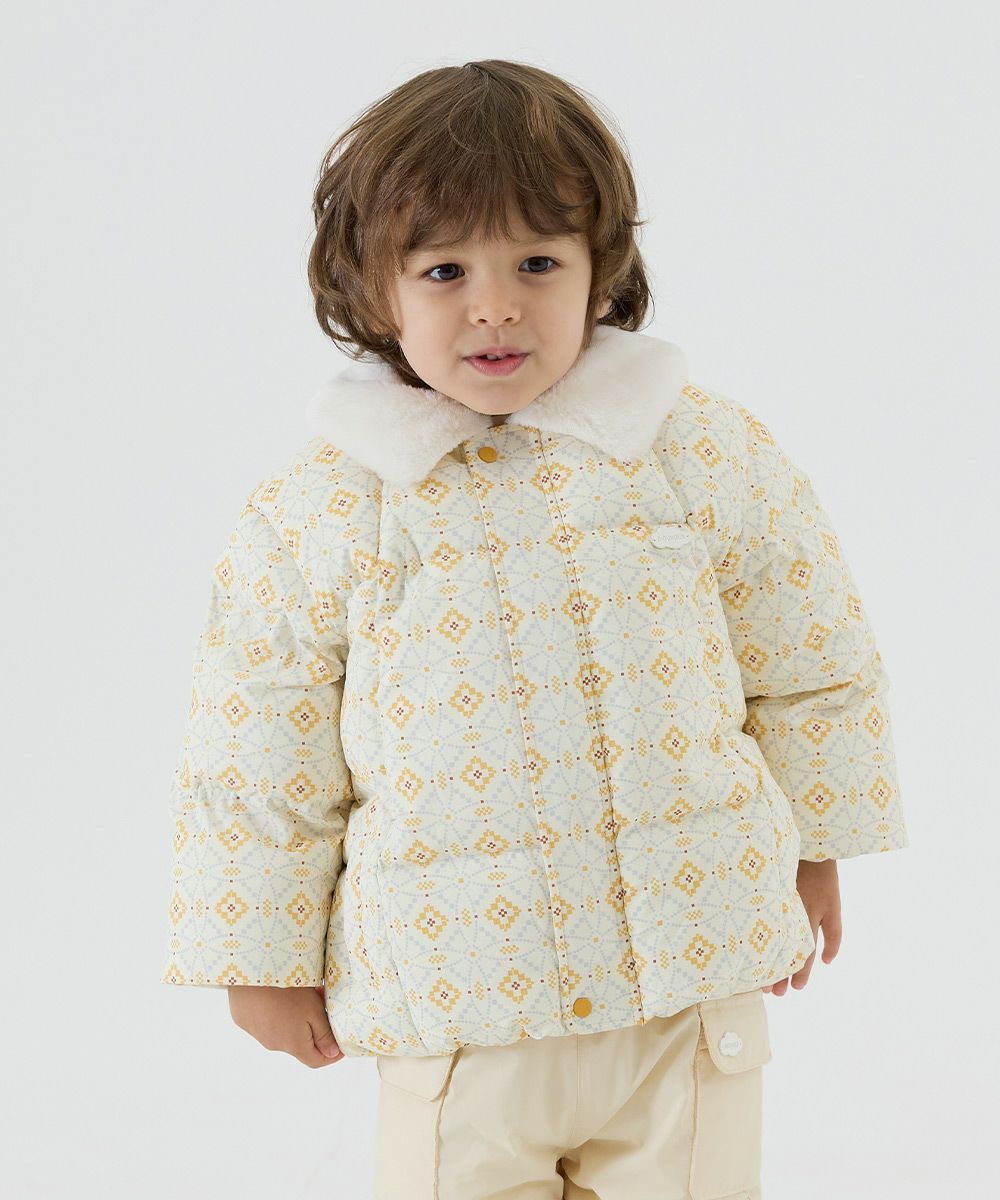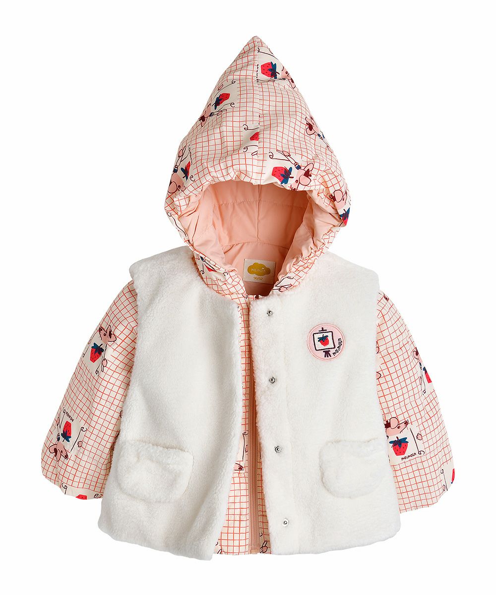 シャーベットノルディックフラワーパデットフード付きカバーオール