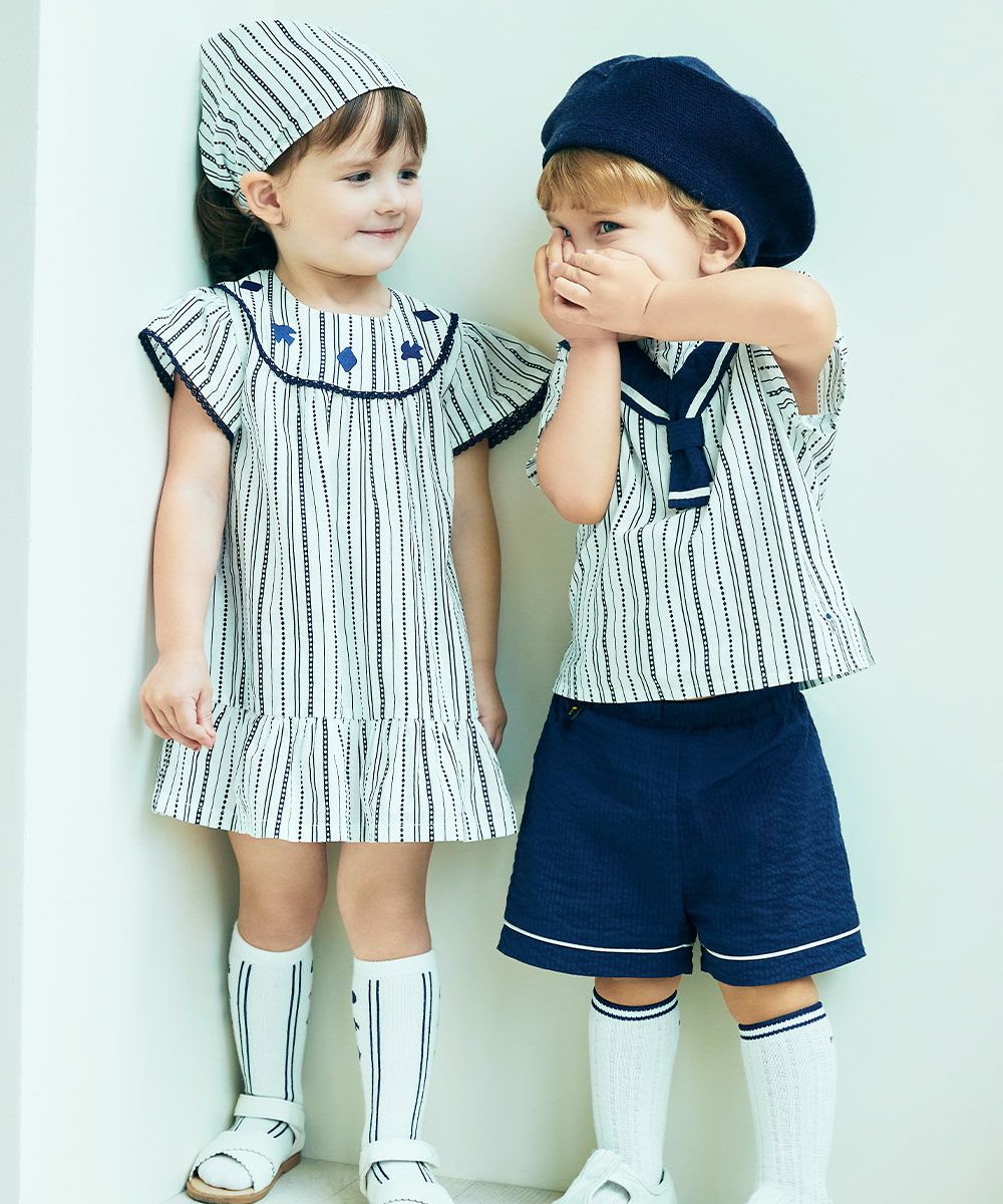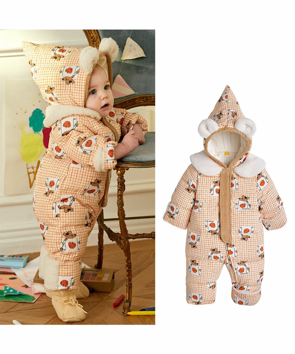 【2点セット】フォックスストライプ柄カバーオール&帽子