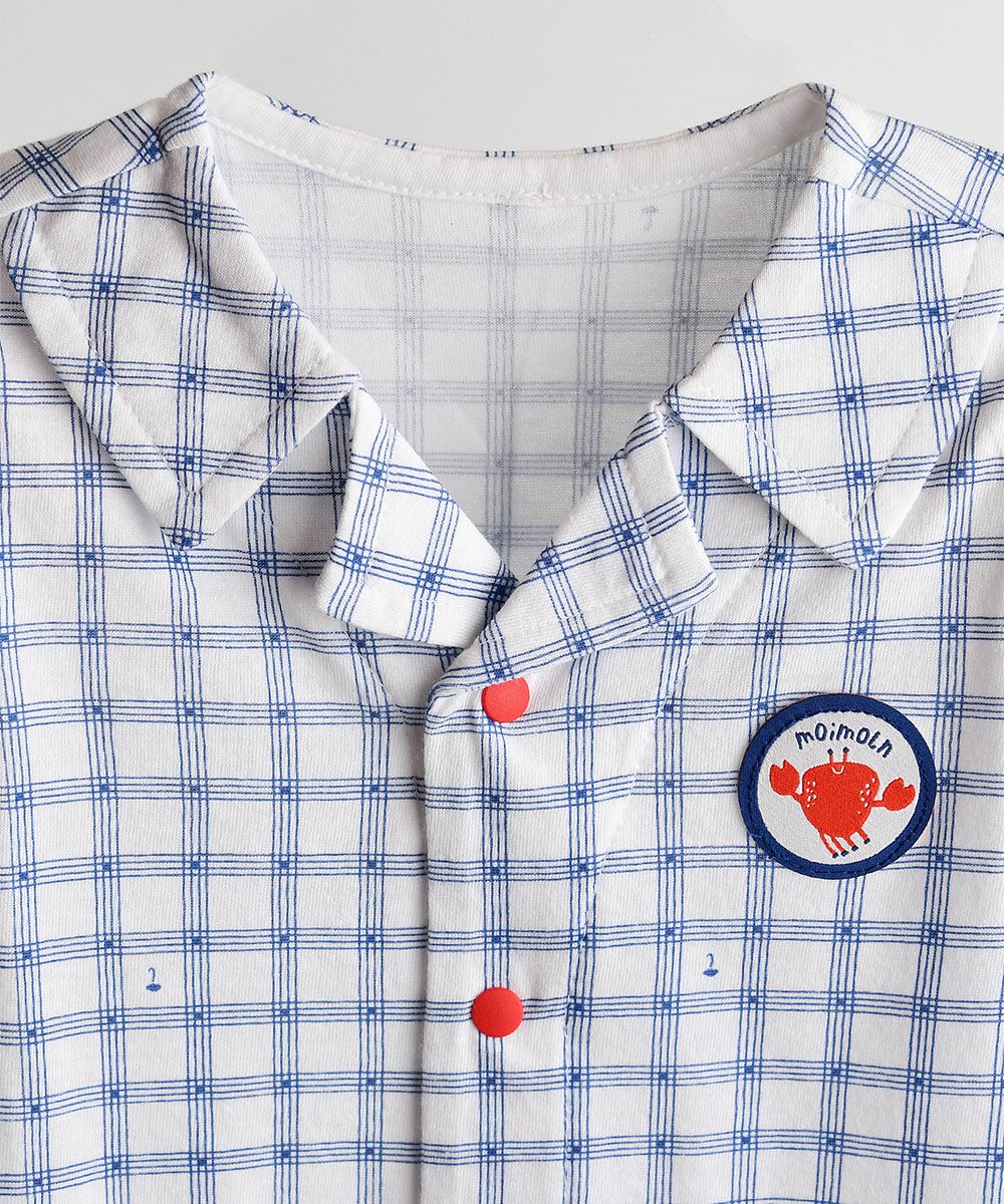 【モダールコットン】ブルーチェック7分丈カバーオール