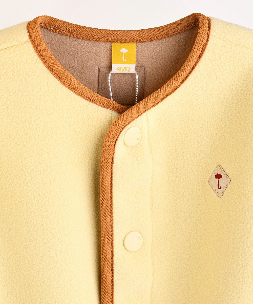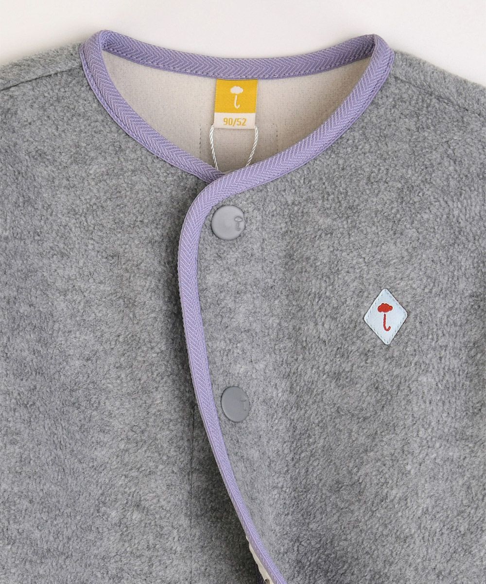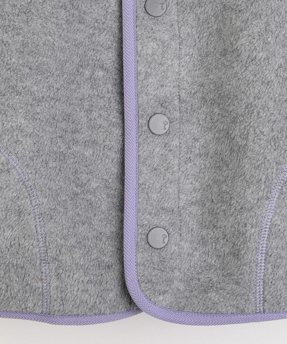【SOFT&】カラー配色ノーカラーフリースジャケット