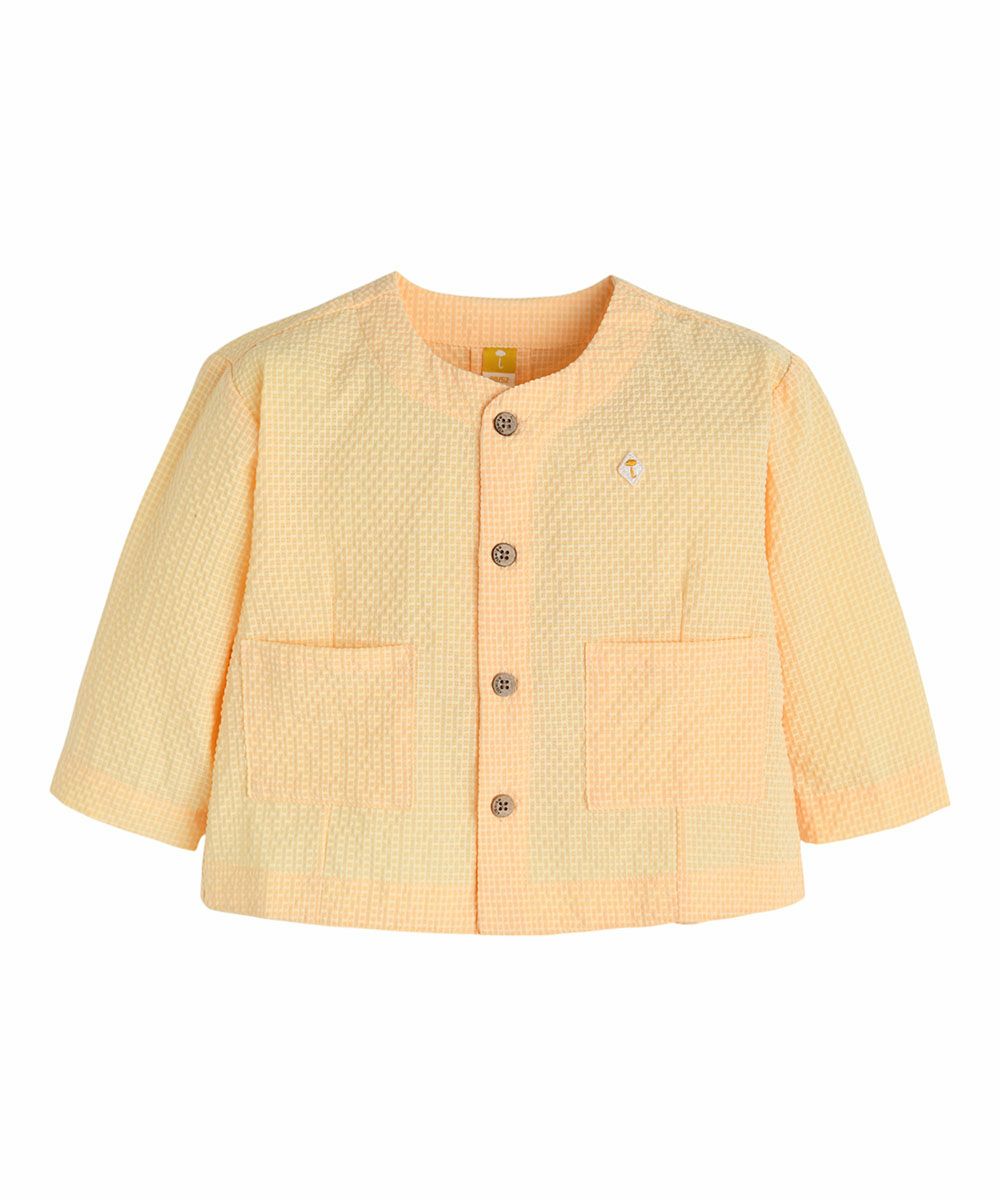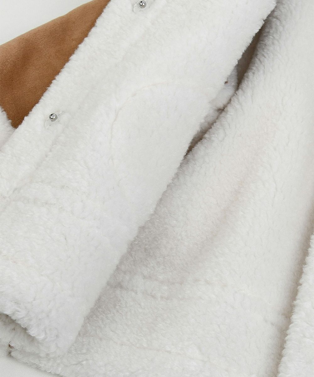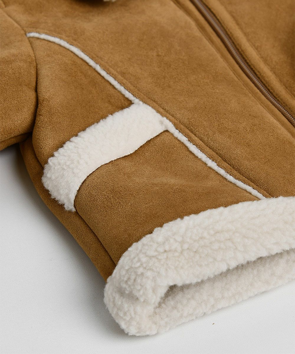 【SOFT&】カラー配色ノーカラーフリースジャケット