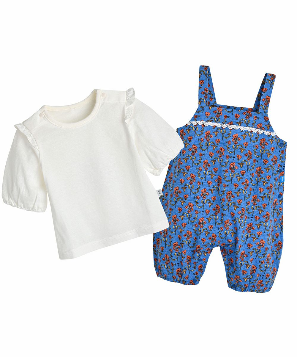 【2点セット】フリルトップス&ブルーフラワーカバーオール