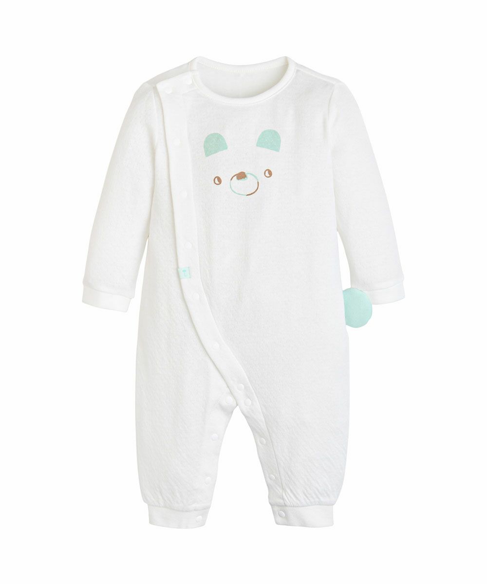 【2点セット】ベアコットンダブルフェイス長袖カバーオール&スタイ
