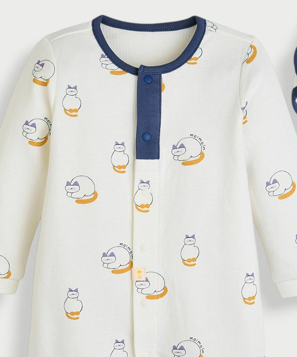 【2点セット】キャットダブルフェイス長袖カバーオール&ヘアバンド