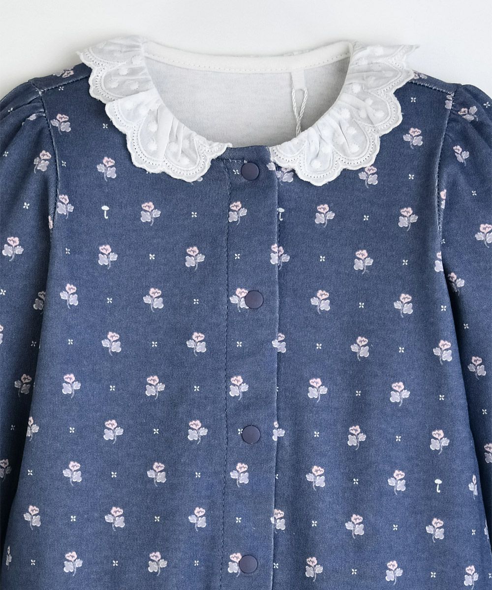 【モダールコットン】ロゼットガーデンZIP長袖カバーオール