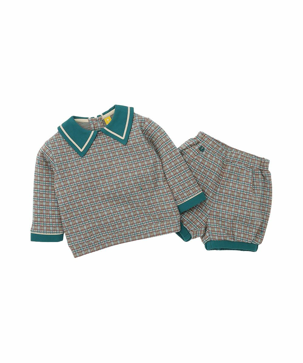 【日本限定】【セットアップ】配色ラインカラータータンチェックトップス&パンツ