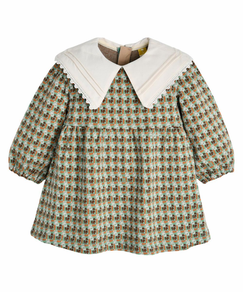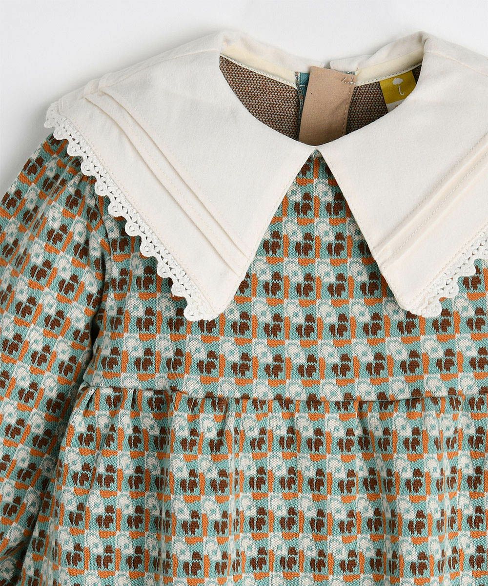 【日本限定】ビッグフリルカラーダイヤ柄ジャカードワンピース