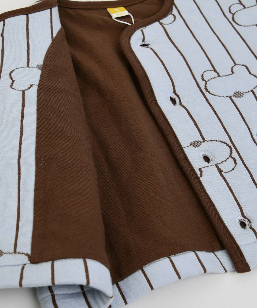 【2点セット】ベアストライプ長袖カバーオール&帽子