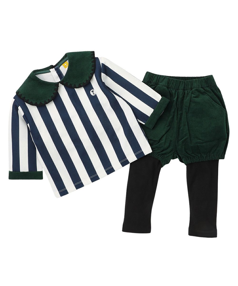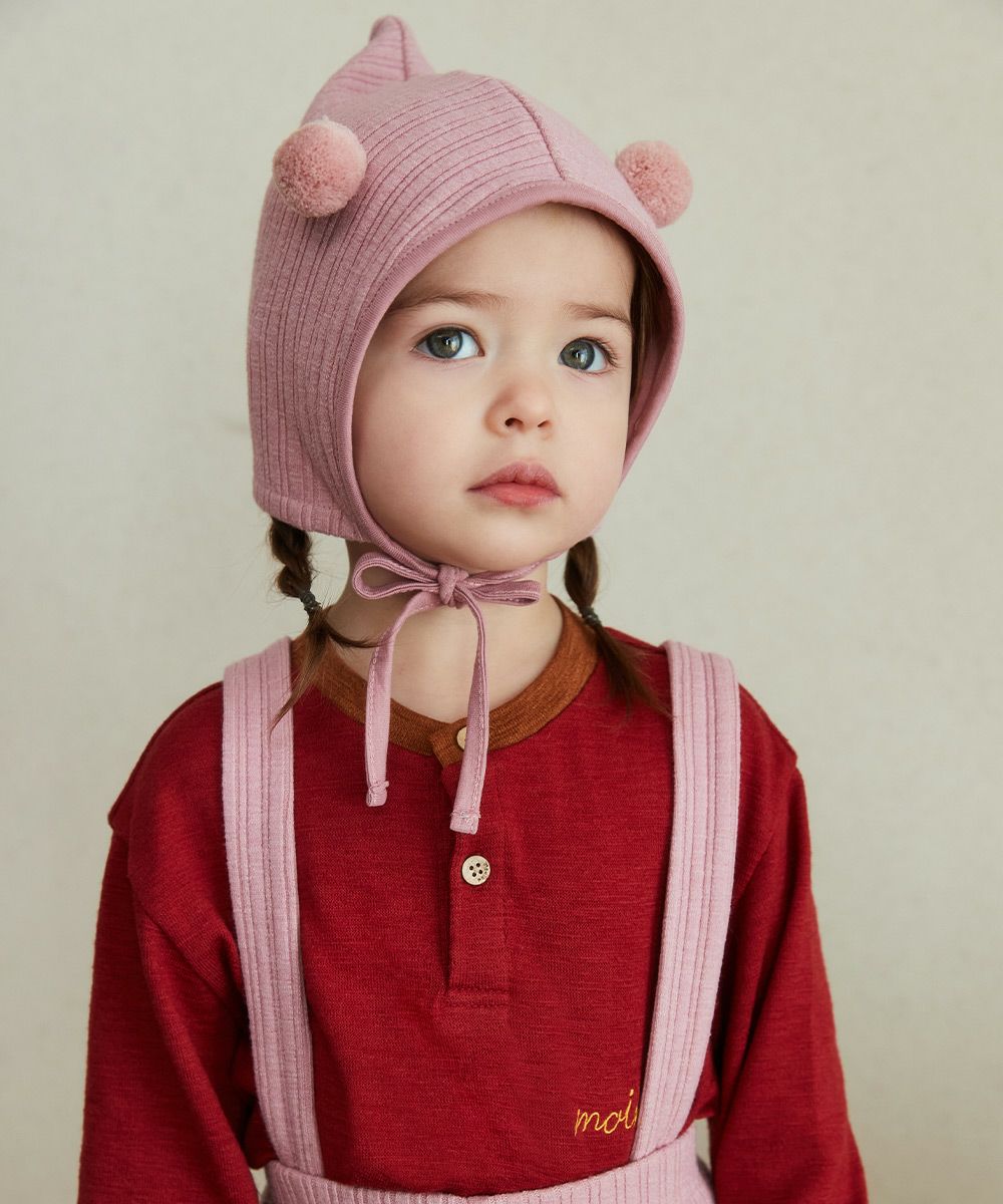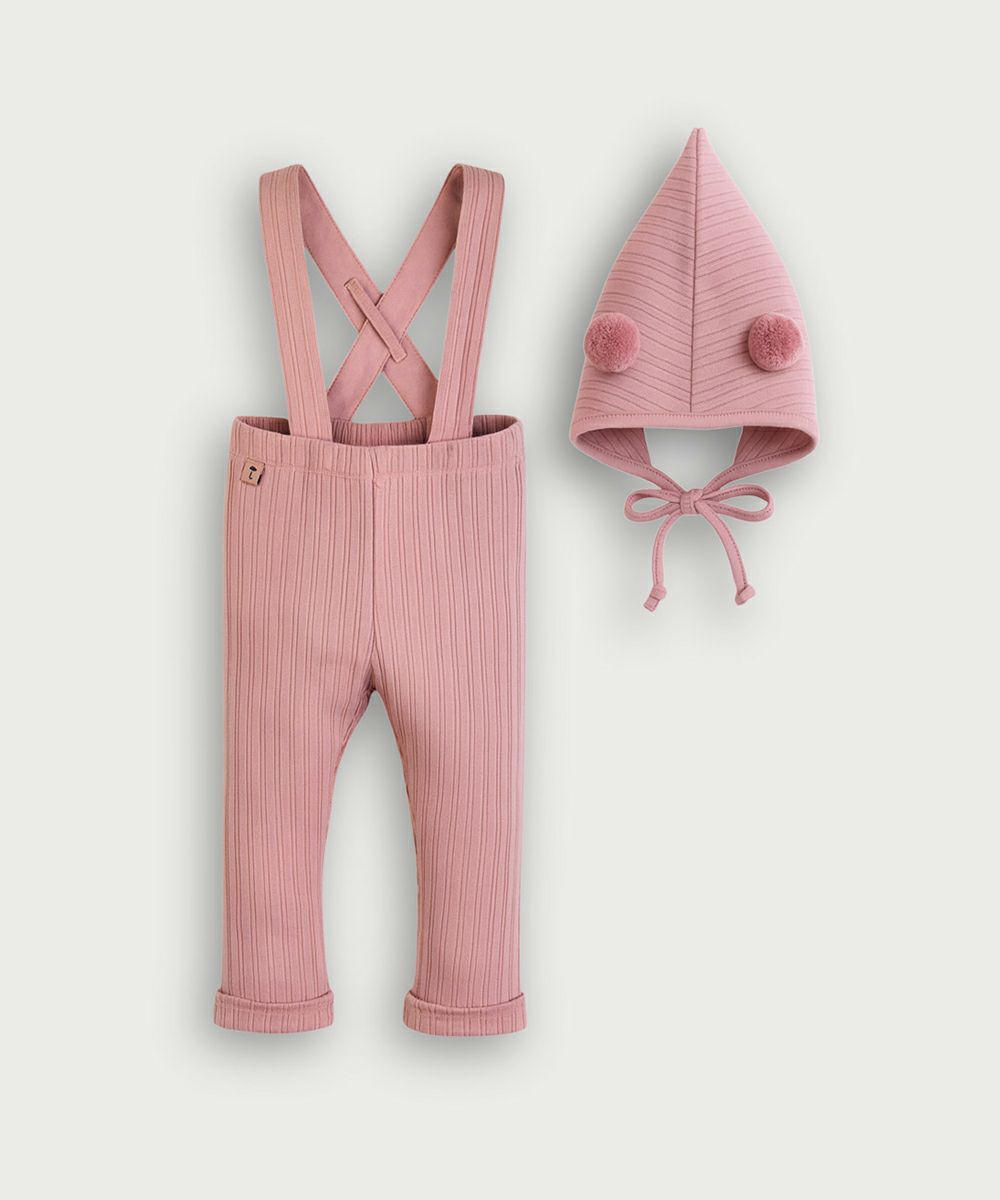 【SOFT&】【2点セット】ベアサスペンダー付きリブレギンス&帽子