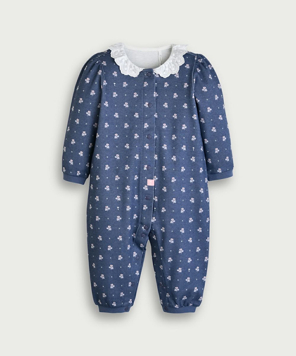 【モダールコットン】ロゼットガーデンZIP長袖カバーオール