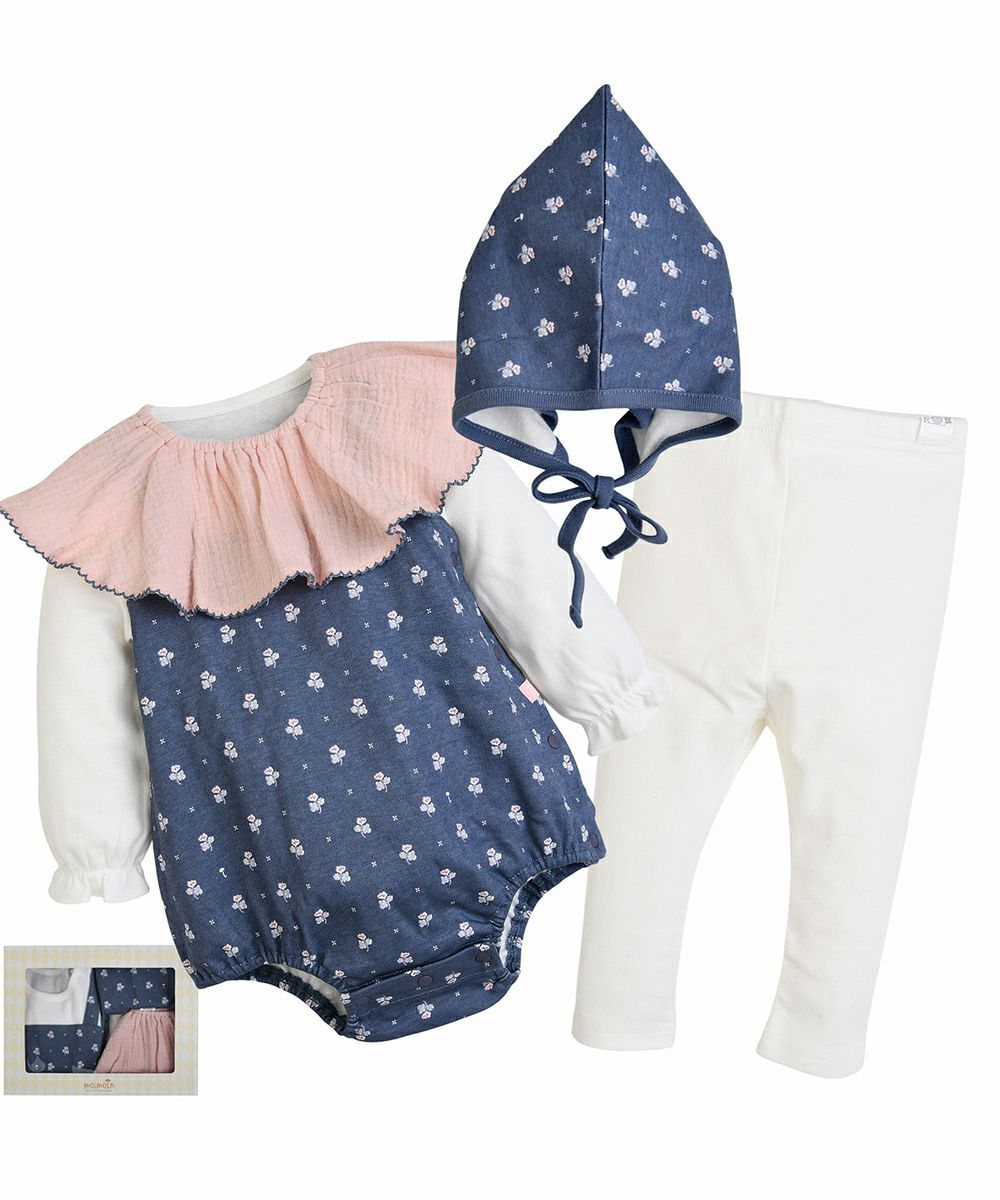 【3点セット】ブルーフラワーキャットベビーギフトセット
