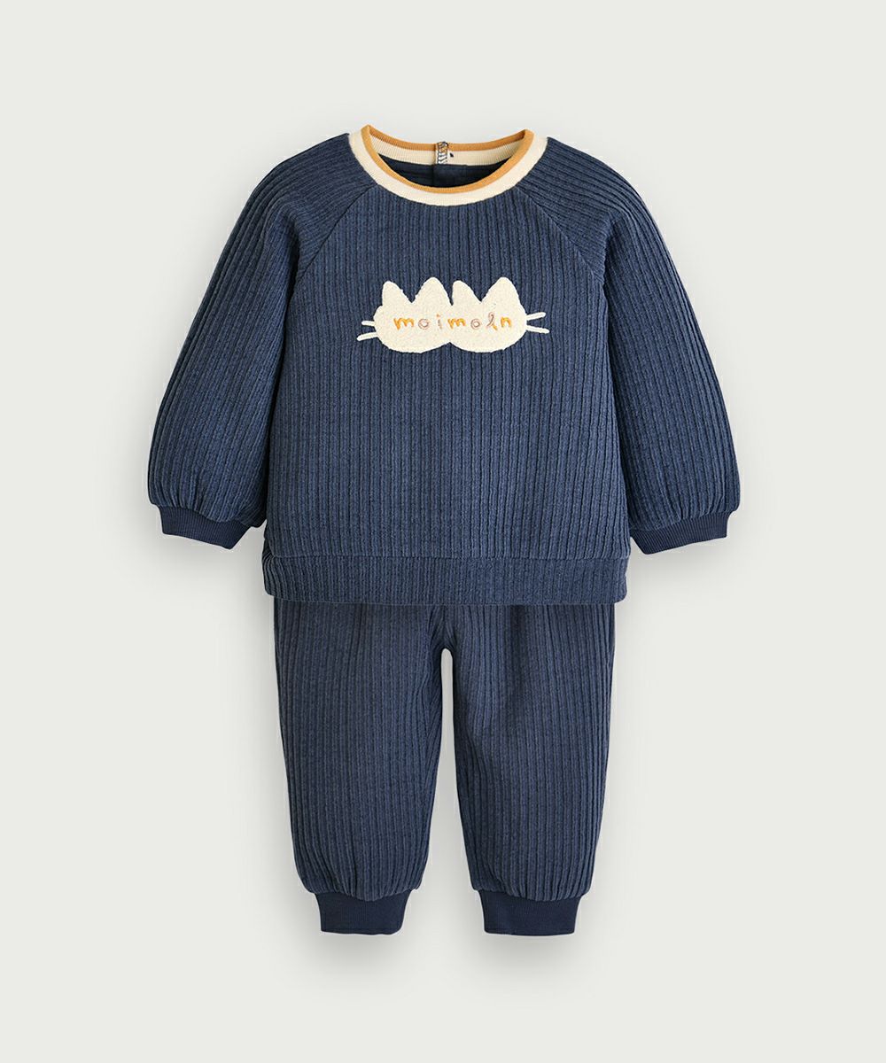 【セットアップ】キャットキルト長袖トップス&無地パンツ