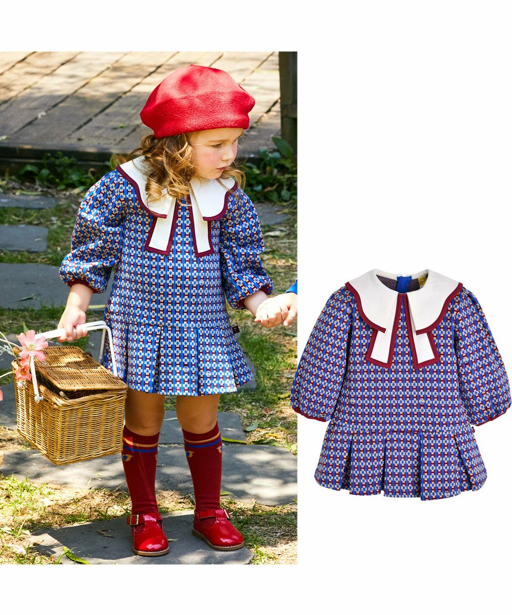 ウェーブカラーレトロ風ワンピース
