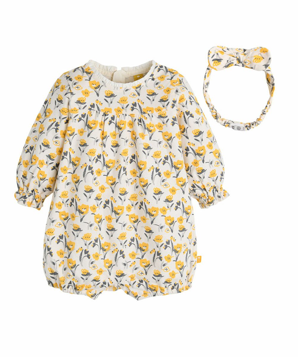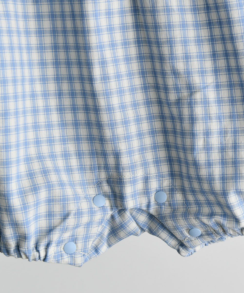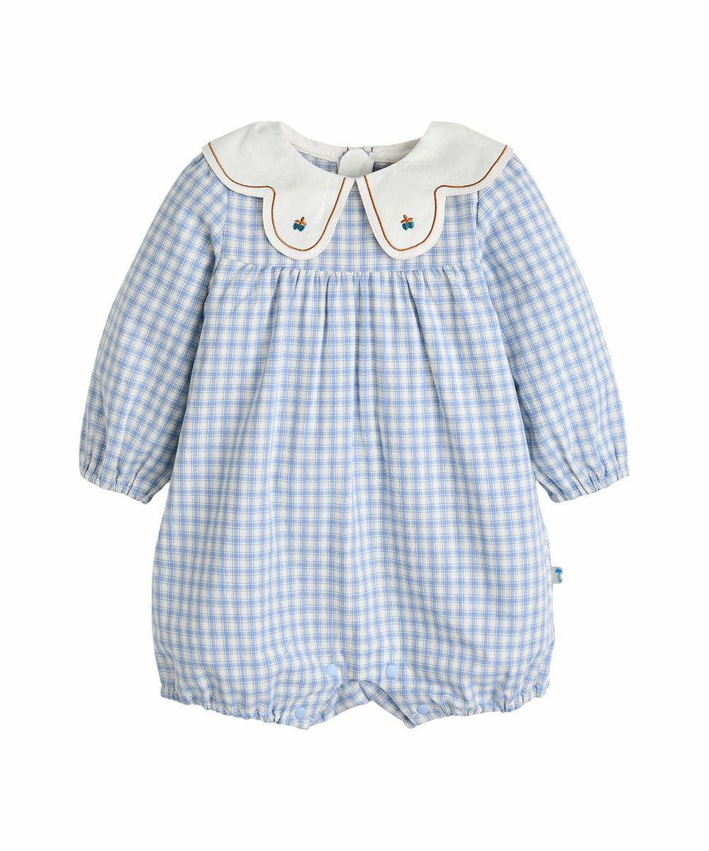 【2点セット】ブルーチェックカバーオール&ヘアバンド