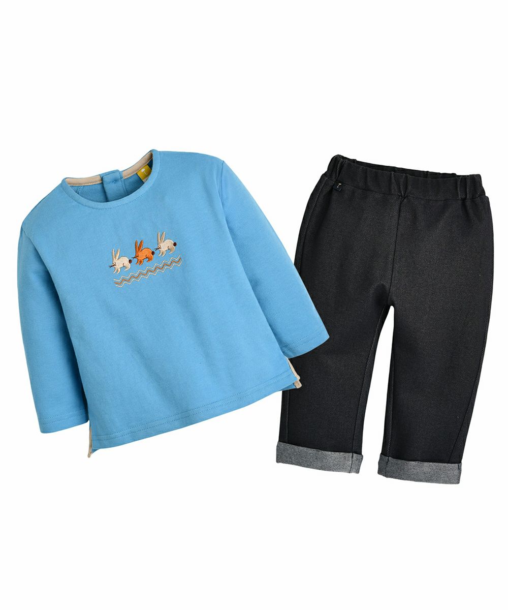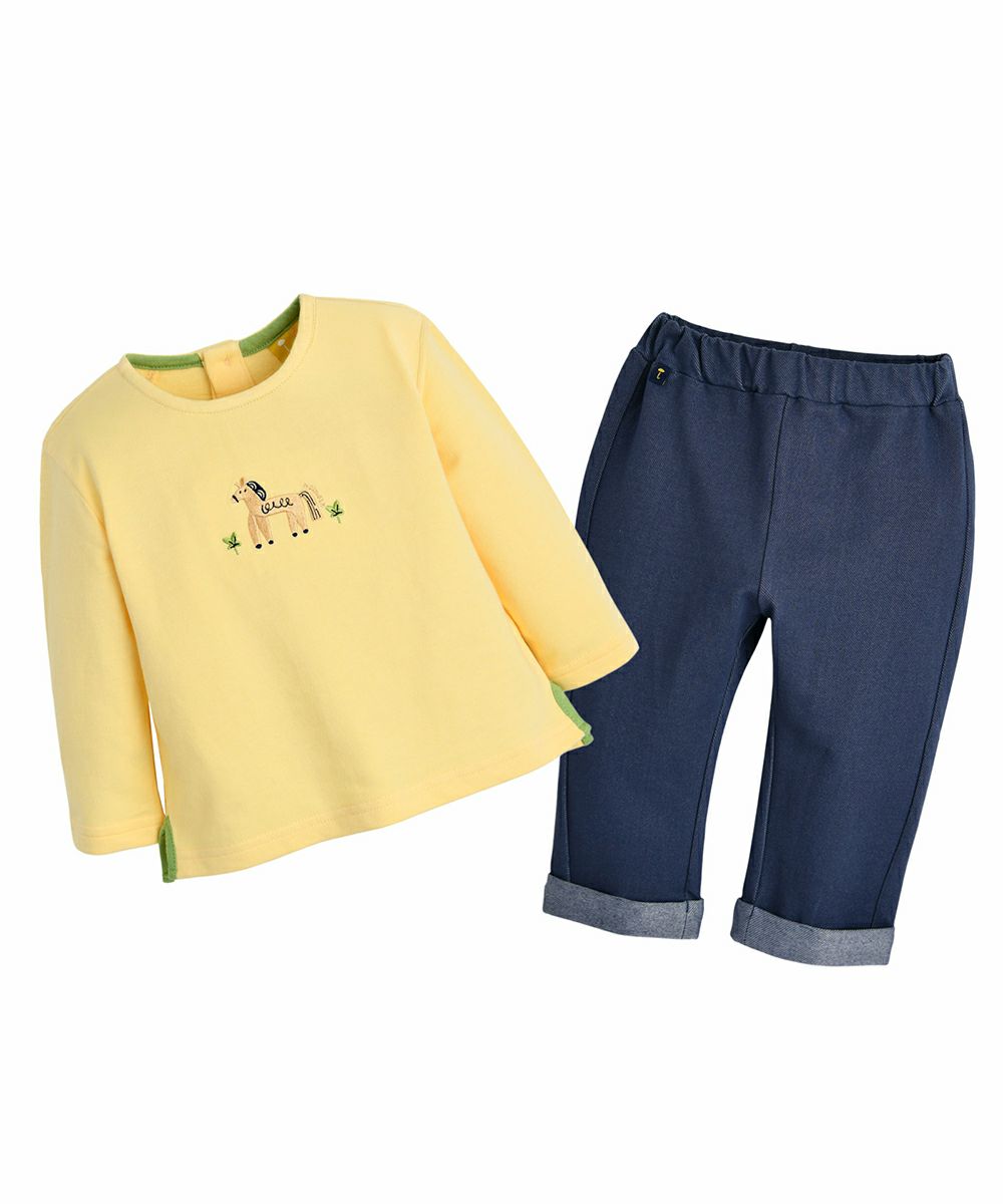 【ルームウェア】ベアバックダブルフェイス長袖トップス&パンツ