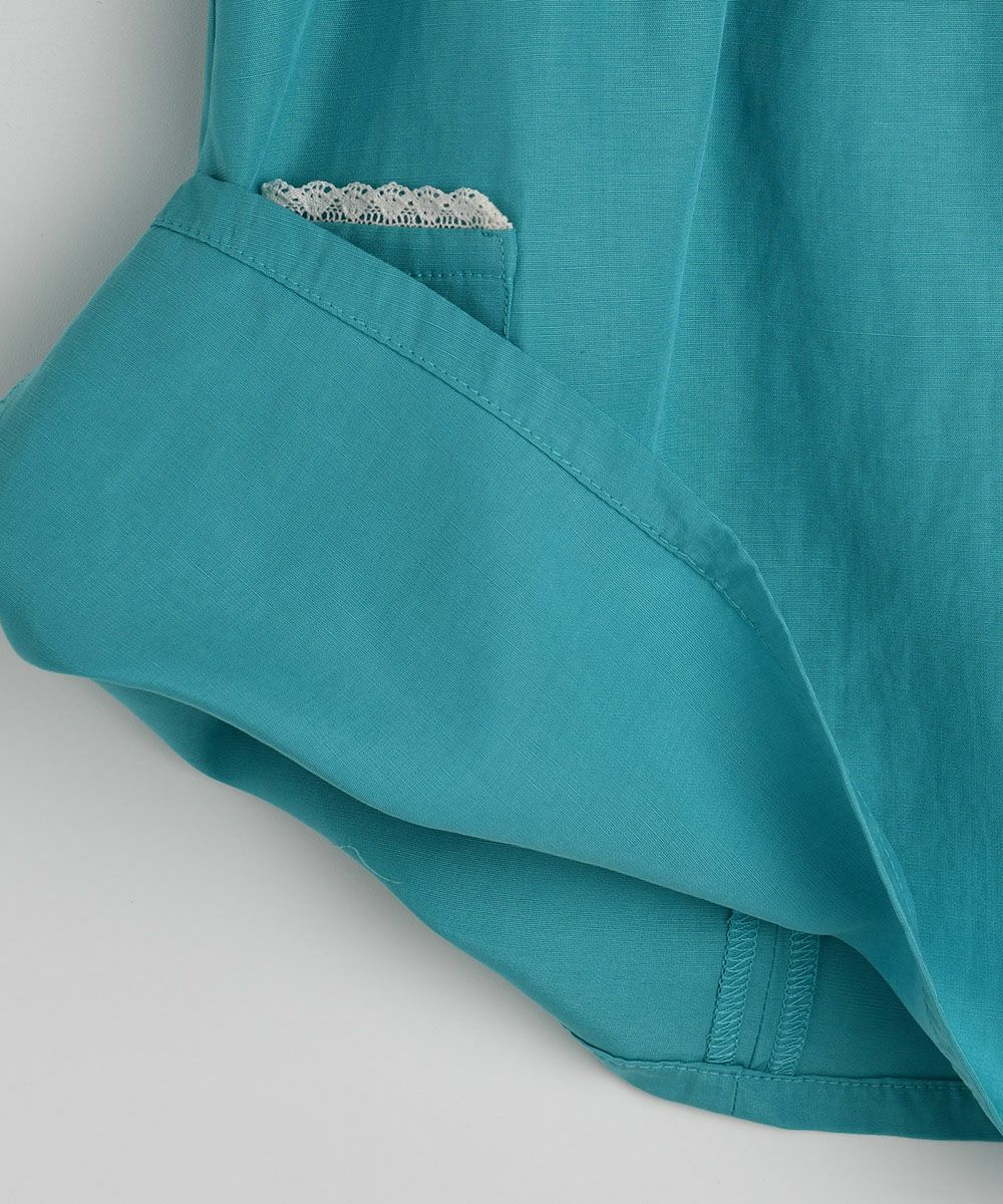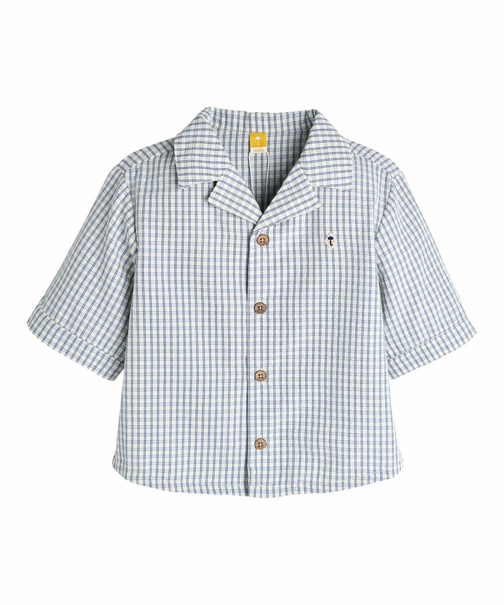 【セットアップ】ブルーチェック7分袖トップス&パンツ