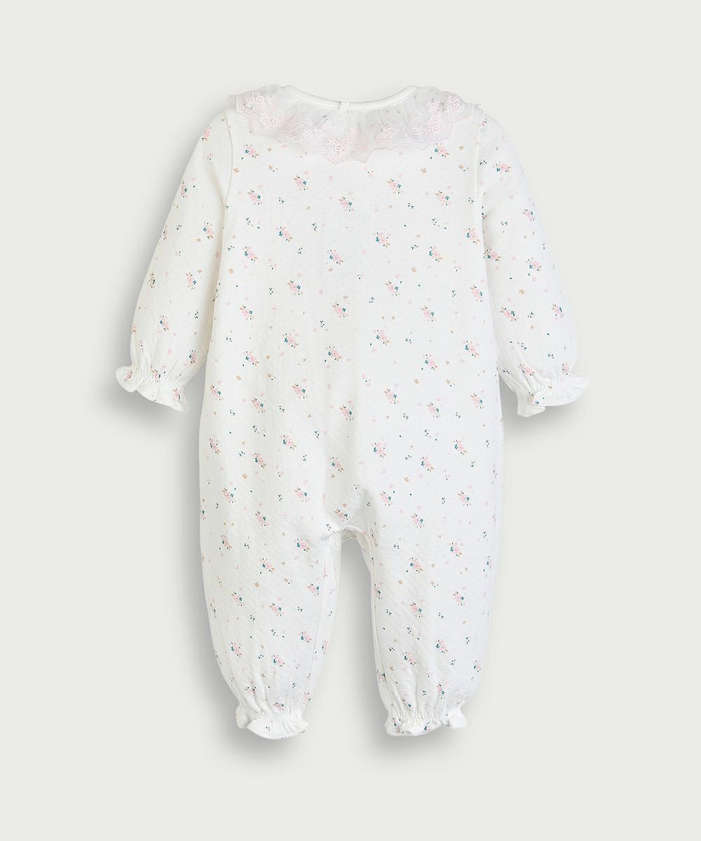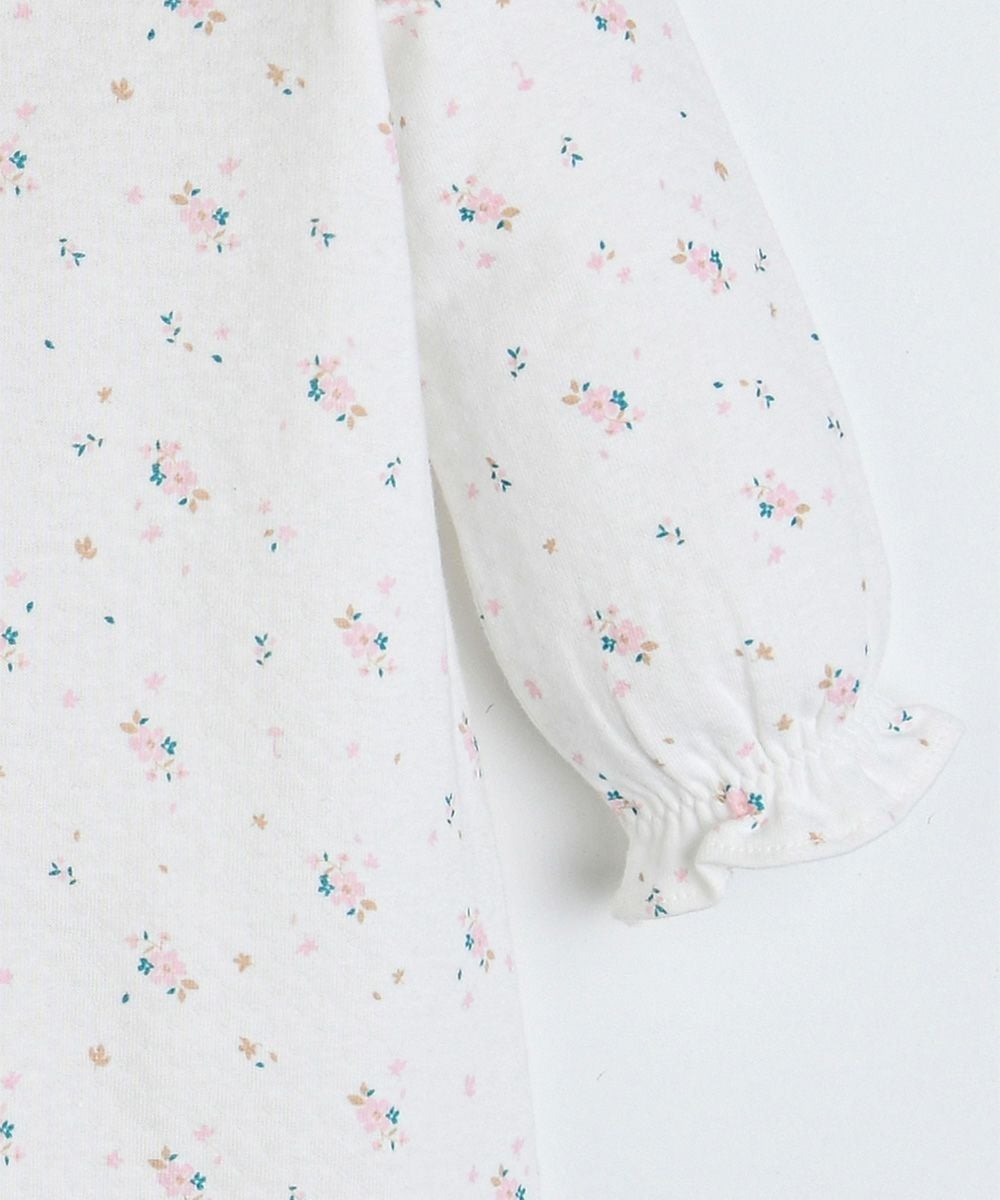 【2点セット】小花ダブルフェイス長袖カバーオール&ヘアバンド
