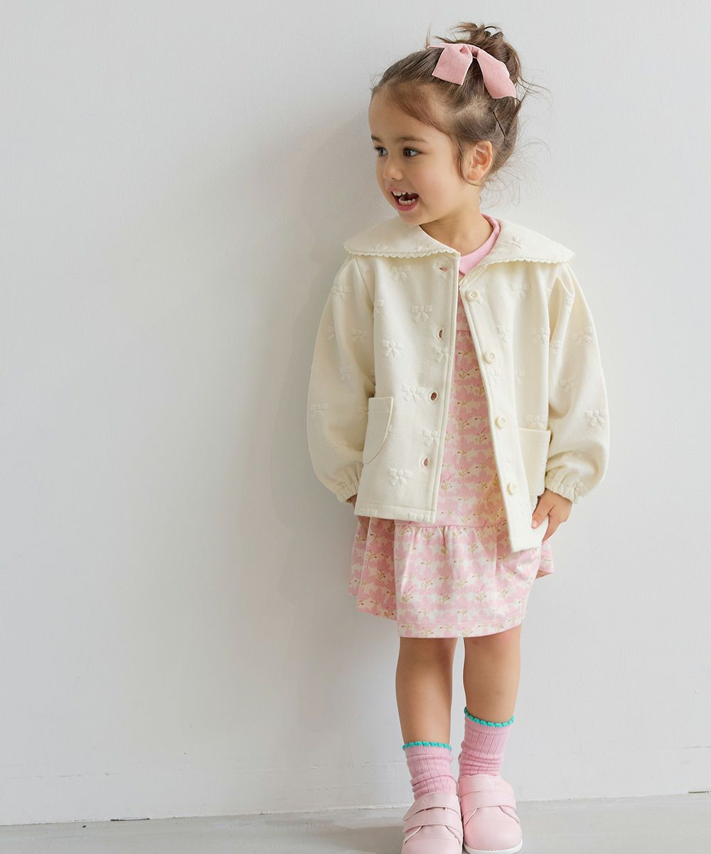 【セットアップ】フラワー襟付き長袖トップス&ブルマパンツ