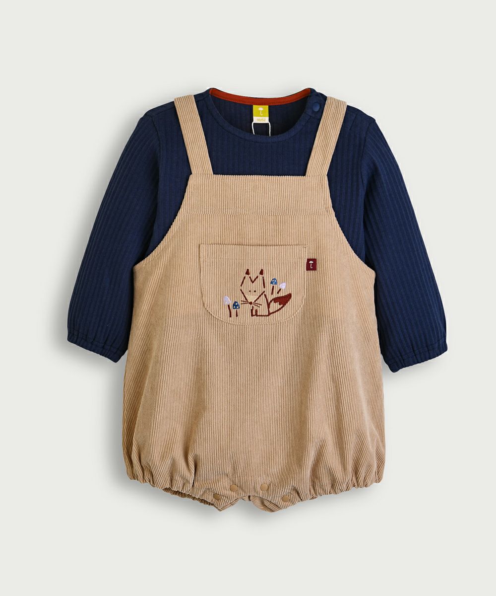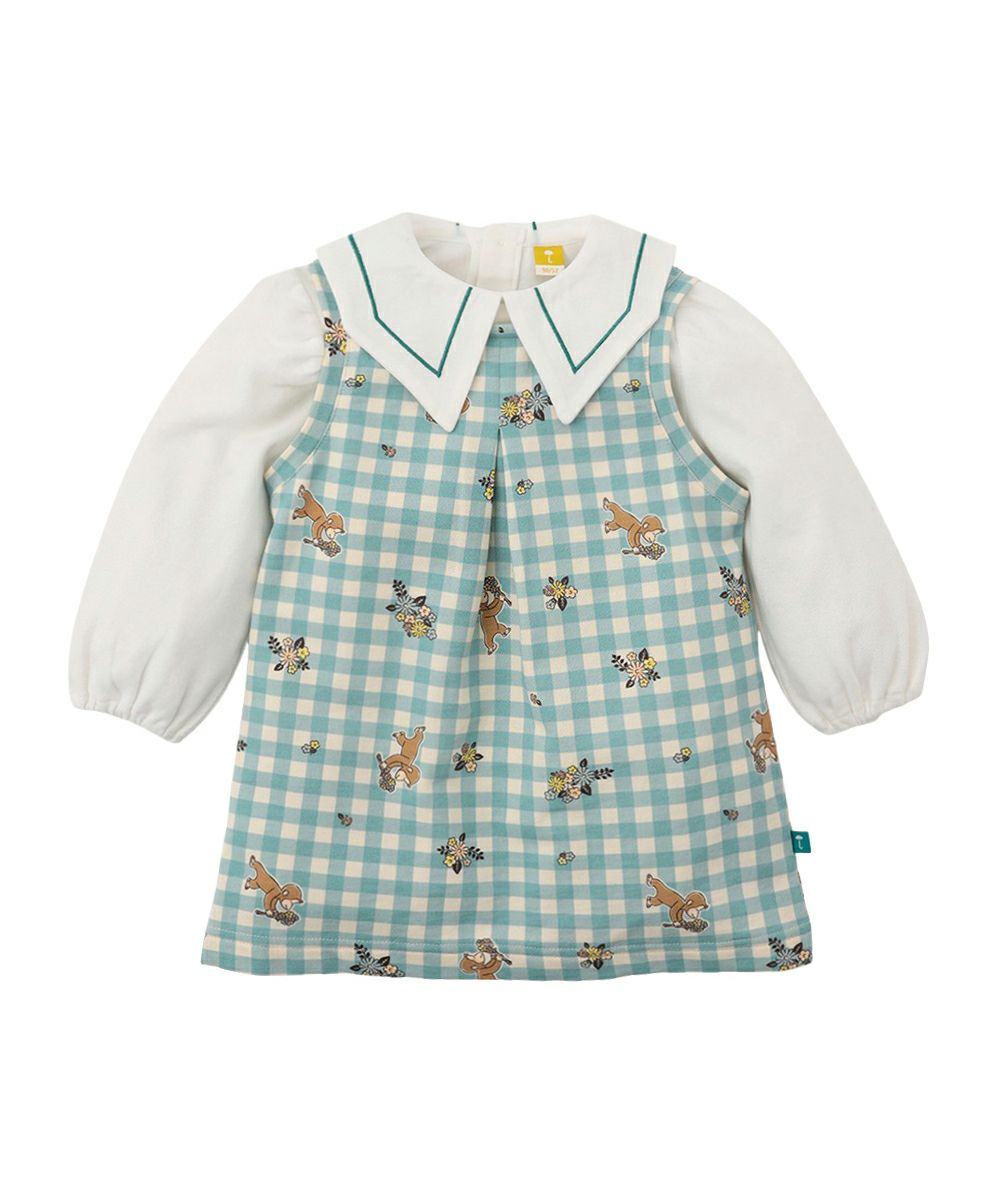【2点セット】キノコ長袖トップス&フォックスオーバーオールワンピース