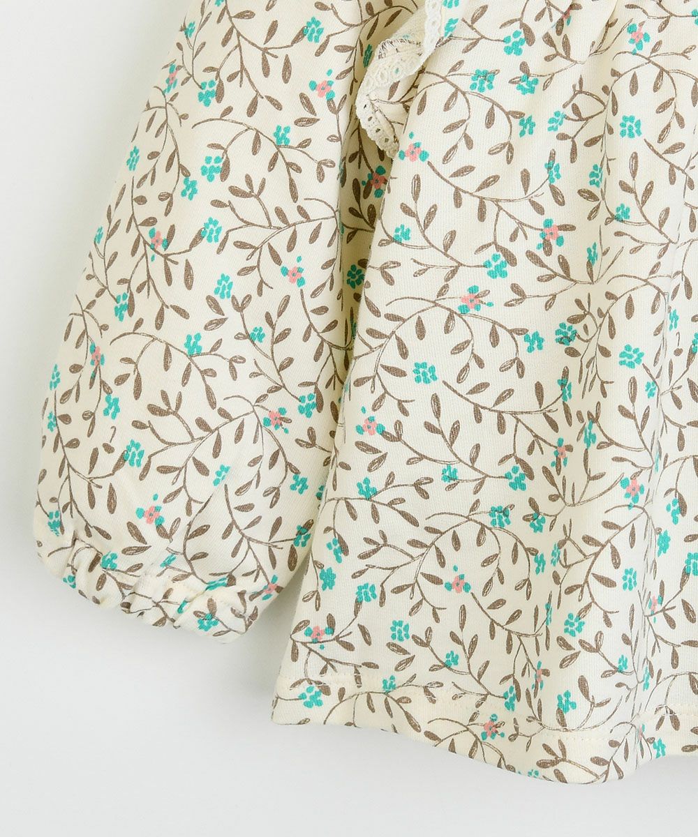 【ルームウェア】レトロフラワーレースフリル長袖トップス&パンツ