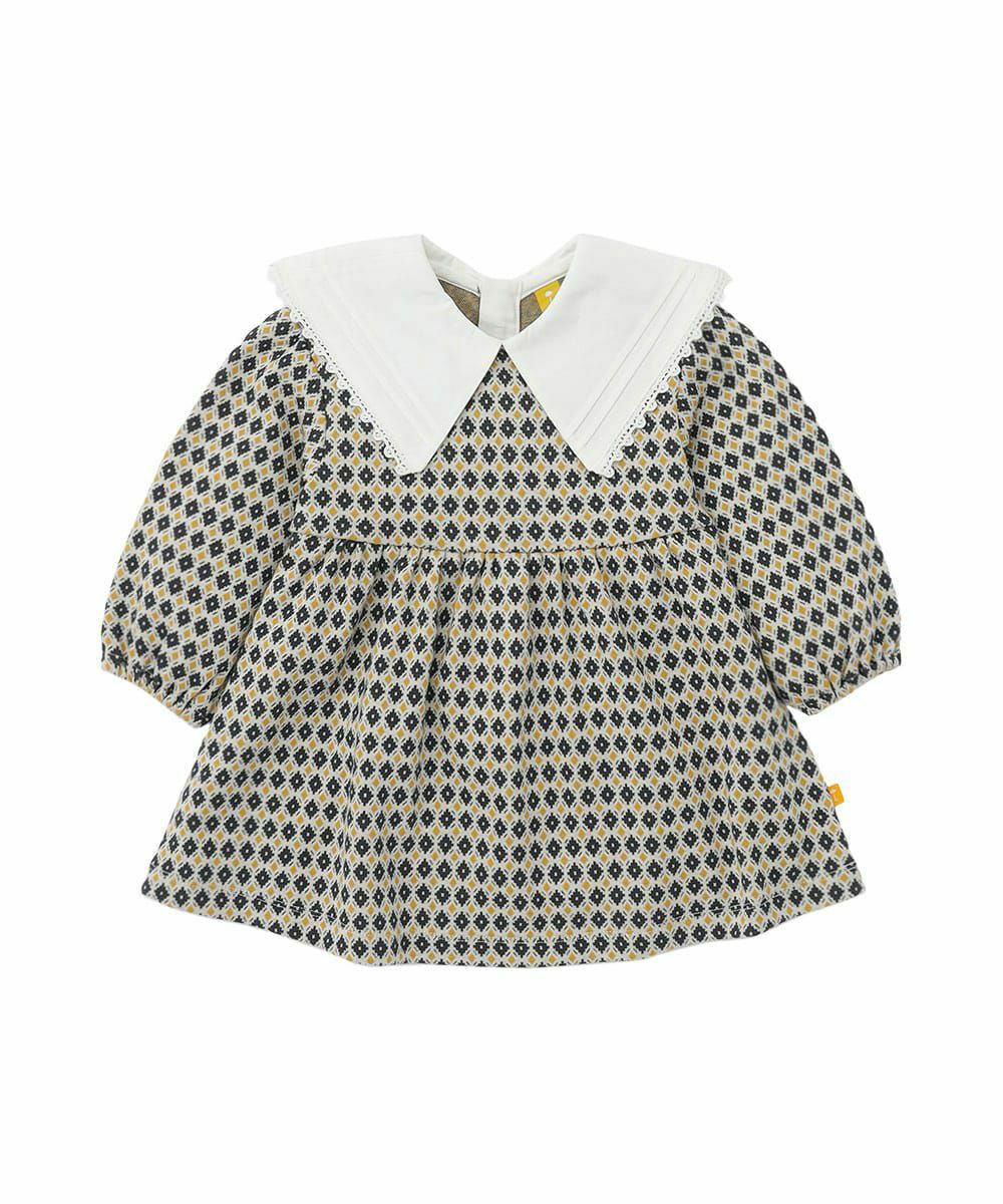 【日本限定】ビッグフリルカラーダイヤ柄ジャカードワンピース