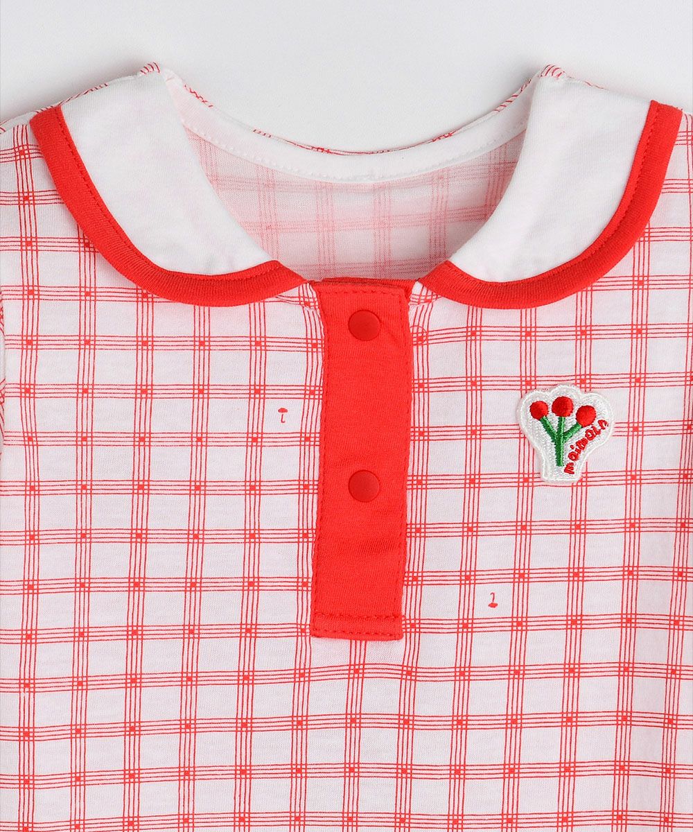 【2点セット】レッドチェック7分袖ロンパース&ヘアバンド
