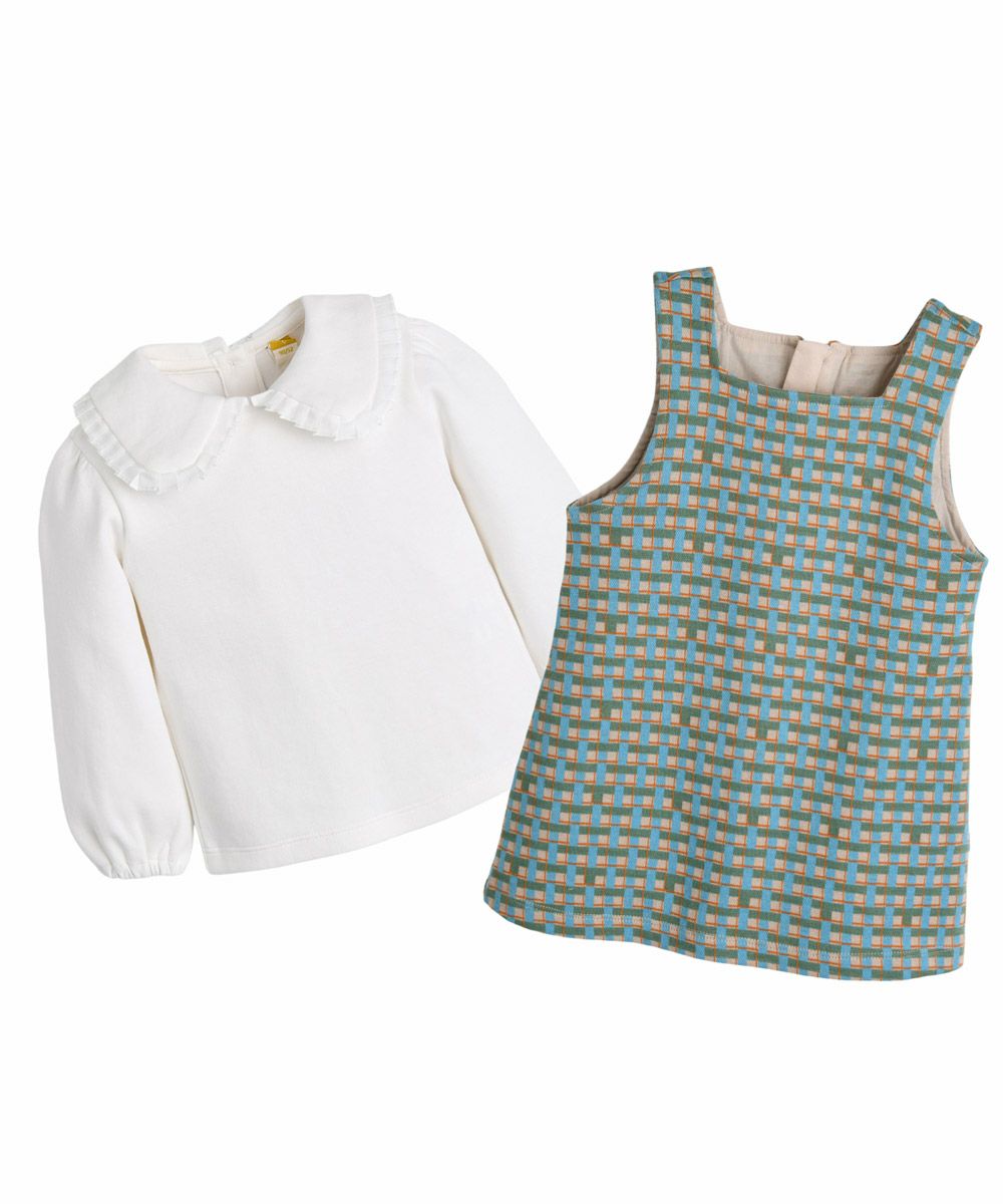 【2点セット】グリーンチェックワンピース&トップス