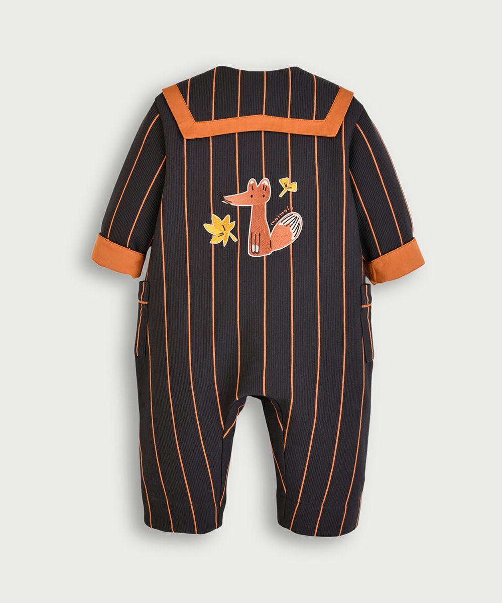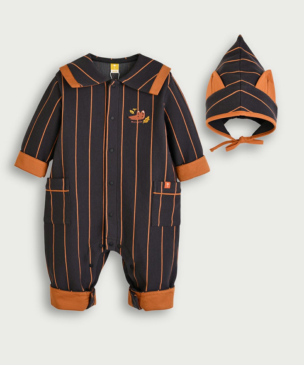 【2点セット】フォックスストライプ柄カバーオール&帽子