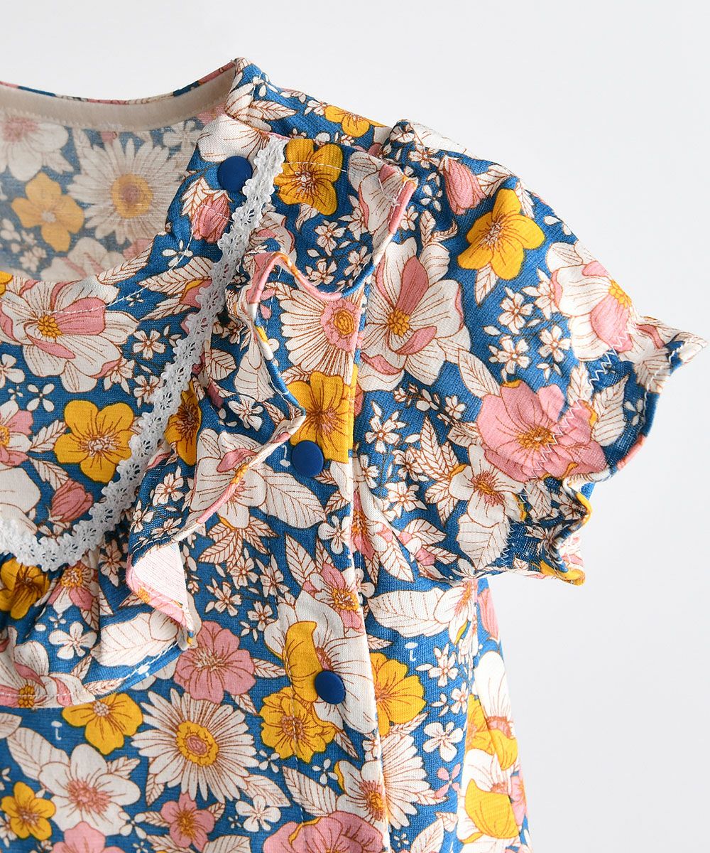 【ルームウェア】レトロフラワーレースフリル長袖トップス&パンツ