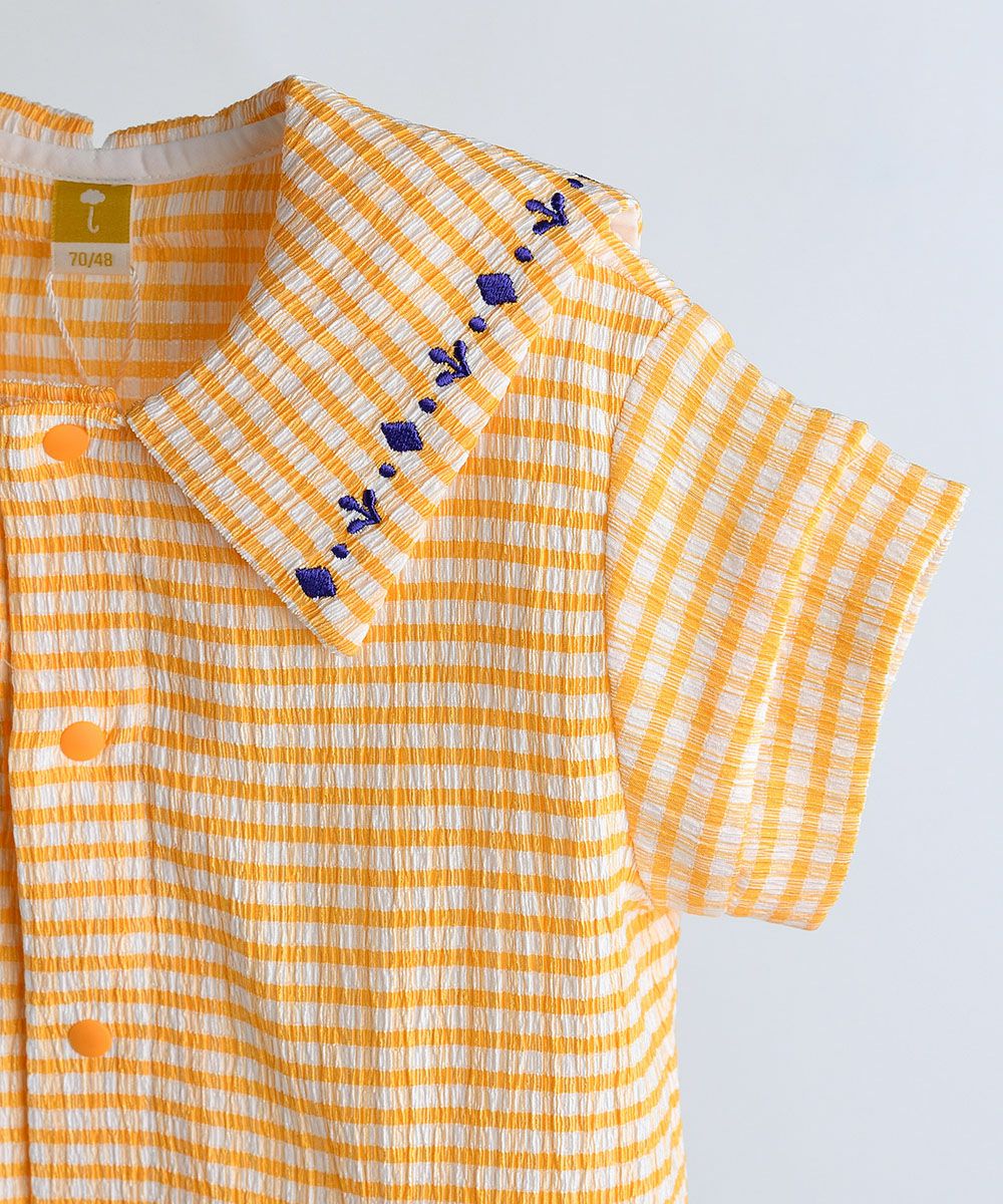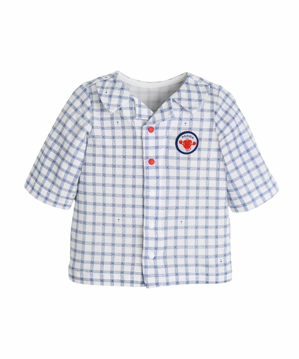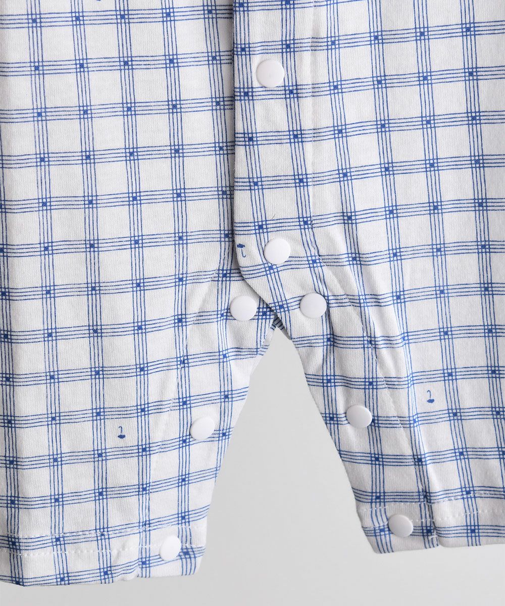 【モダールコットン】ブルーチェック7分丈カバーオール