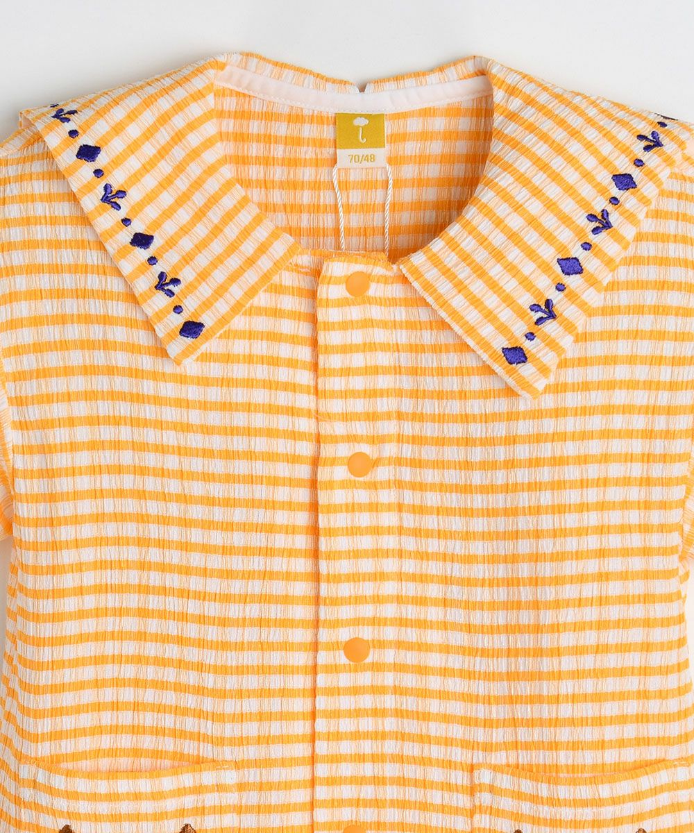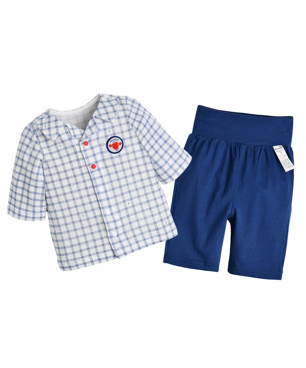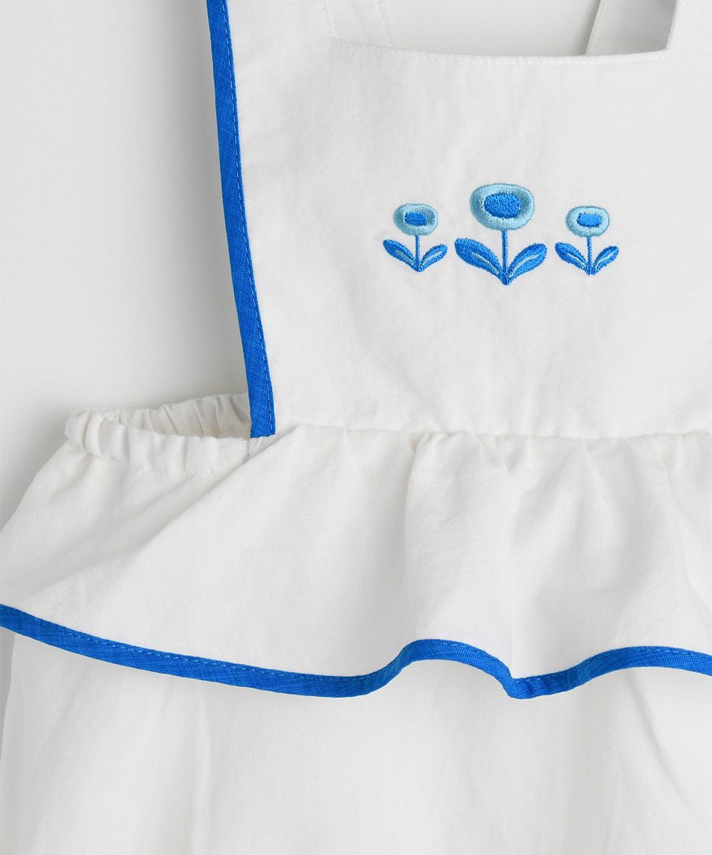 【モダールコットン】ブルーチェック7分丈カバーオール